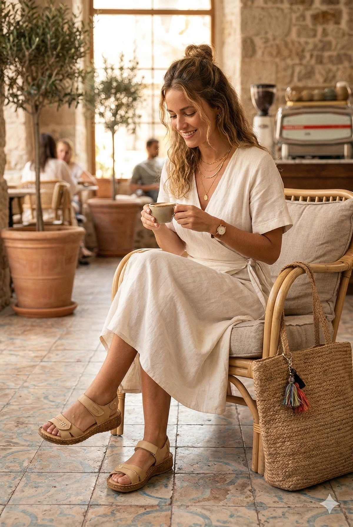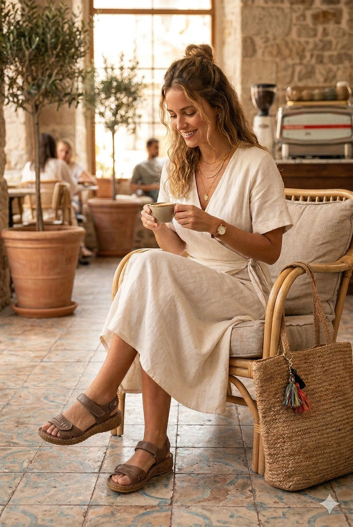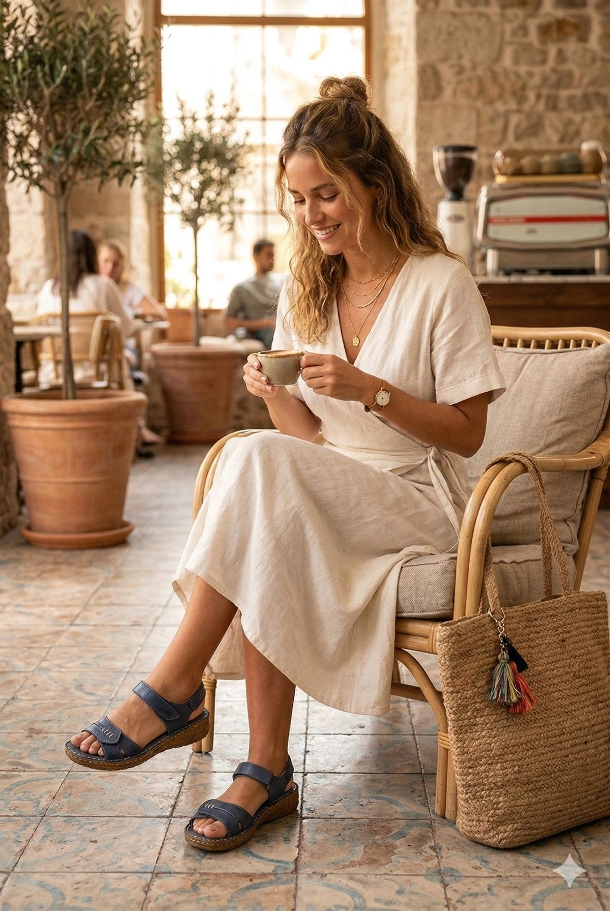 - Taban: Mantar (cork) wedge taban – hafif, yastıklama etkisi yüksek ve ortopedik destekli