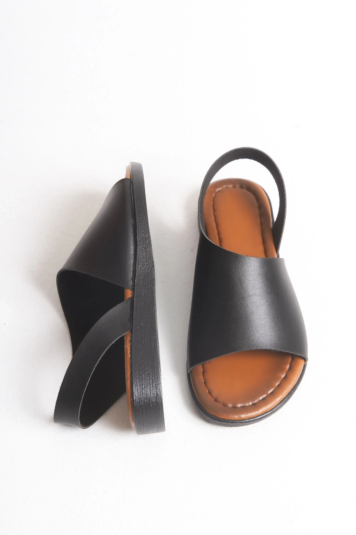 Amara Hakiki Deri Geniş Bantlı Önü Açık Rahat Sandalet