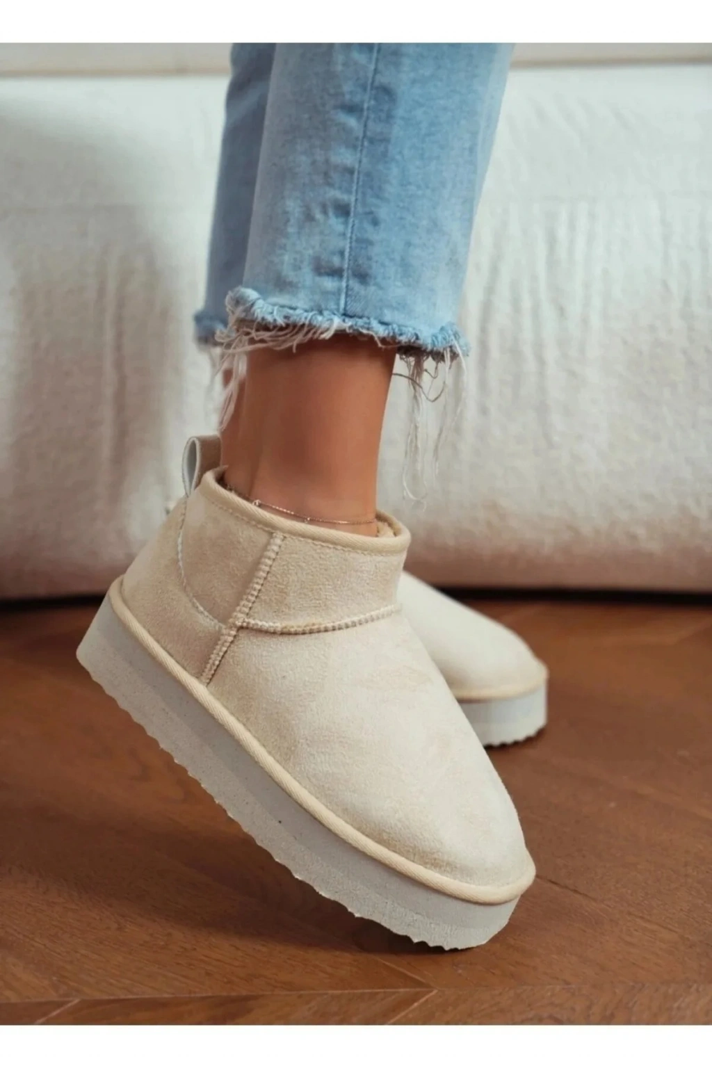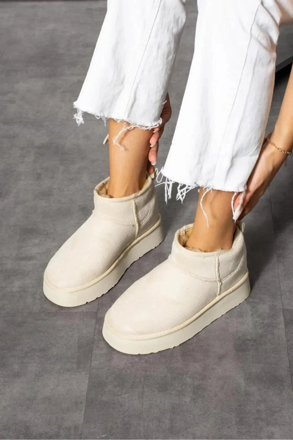 Andra Krem Kadın Kalın Taban Süet İçi Kürklü Rahat Günlük Bot