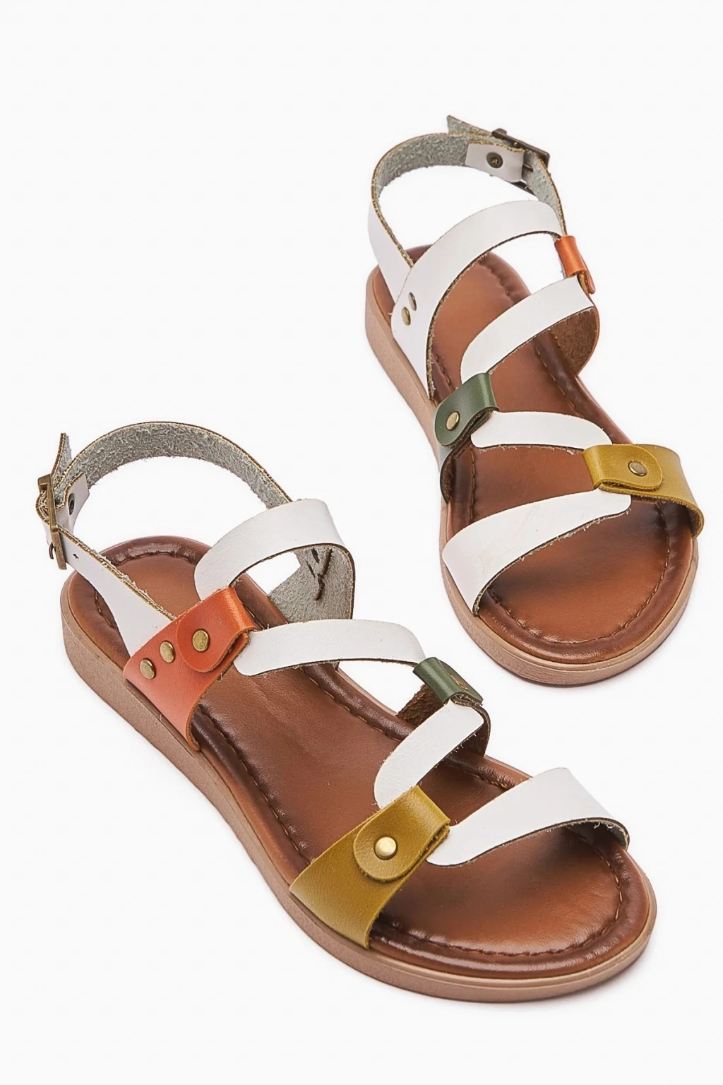 Crina Hakiki Deri Dalga Bantlı Rahat Sandalet