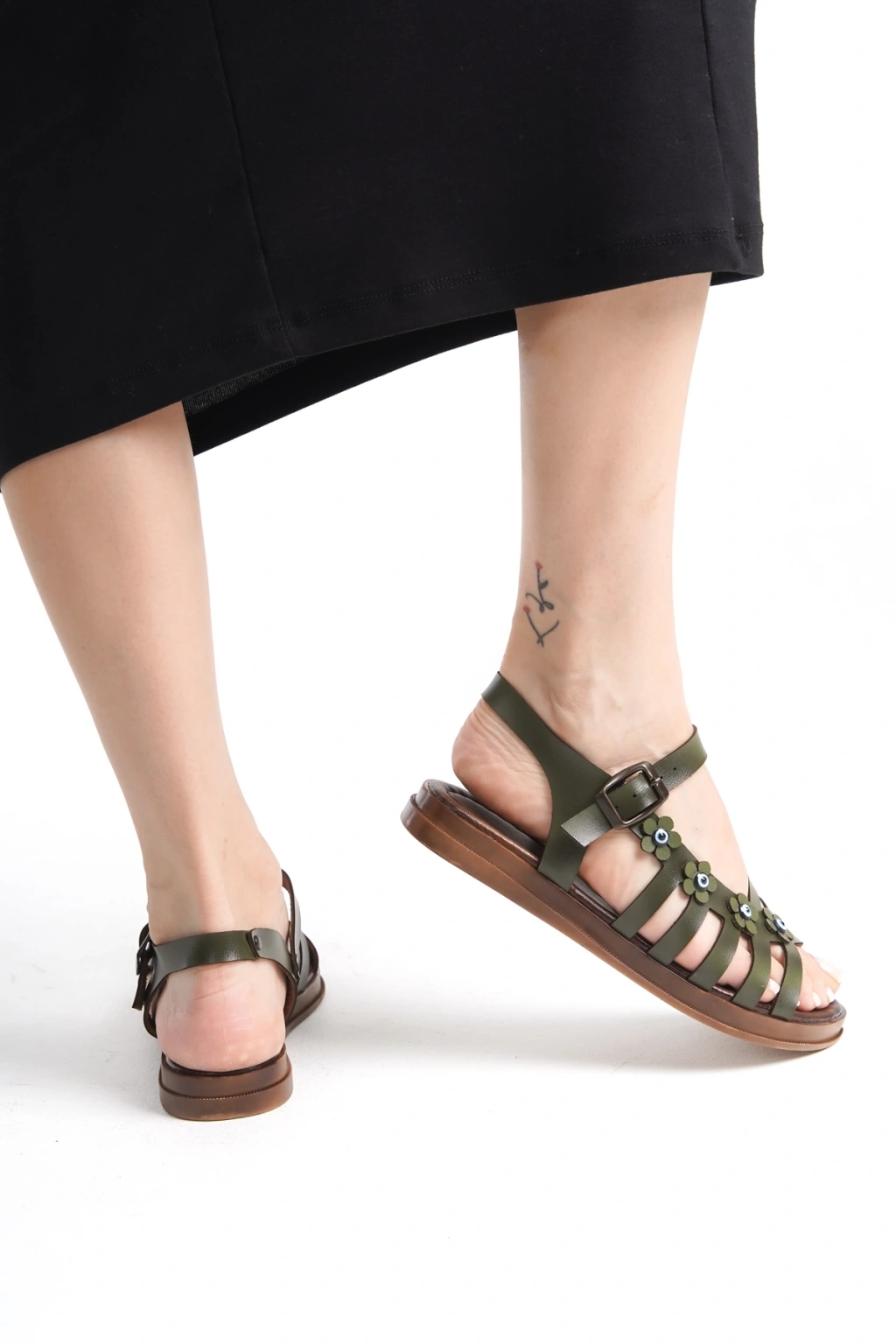 Bağcıklı tasarımı sayesinde ayaklarınıza mükemmel uyum sağlar ve gün boyu rahat bir kullanım sunar; Çiçekli deseniyle şıklığınızı tamamlayan bu sandalet, günlük kombinlerinizde doğal bir dokunuş katıyor; Termoplastik taban materyali ile esneklik ve dayanıklılık bir arada sunarak her adımınızda konfor sağlar; Hakiki deri materyali, uzun ömürlü kullanım ve kaliteli bir görünüm vaat eder; Casual ortamlarda rahatlıkla tercih edebileceğiniz bu sandalet, günlük şıklığınızın vazgeçilmez parçası olacak; İç tabanında da hakiki deri kullanarak ayak sağlığınız düşünülerek tasarlanmıştır; nefes alabilir yapısıyla gün boyu konfor sunar; 1 ila 4 cm arasındaki kısa topuk boyu, hem rahatlık hem de zarif bir duruş sağlar; Astar materyali olarak da hakiki deri tercih edilerek ayaklarınızın gün boyu rahat etmesine olanak tanır; Saya kısmında kullanılan hakiki deri malzeme, dayanıklılığı arttırarak uzun süreli kullanım imkanı sunar;