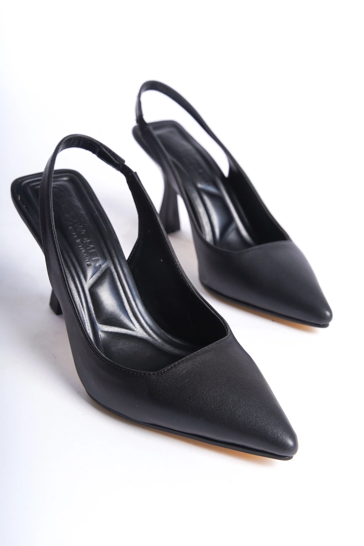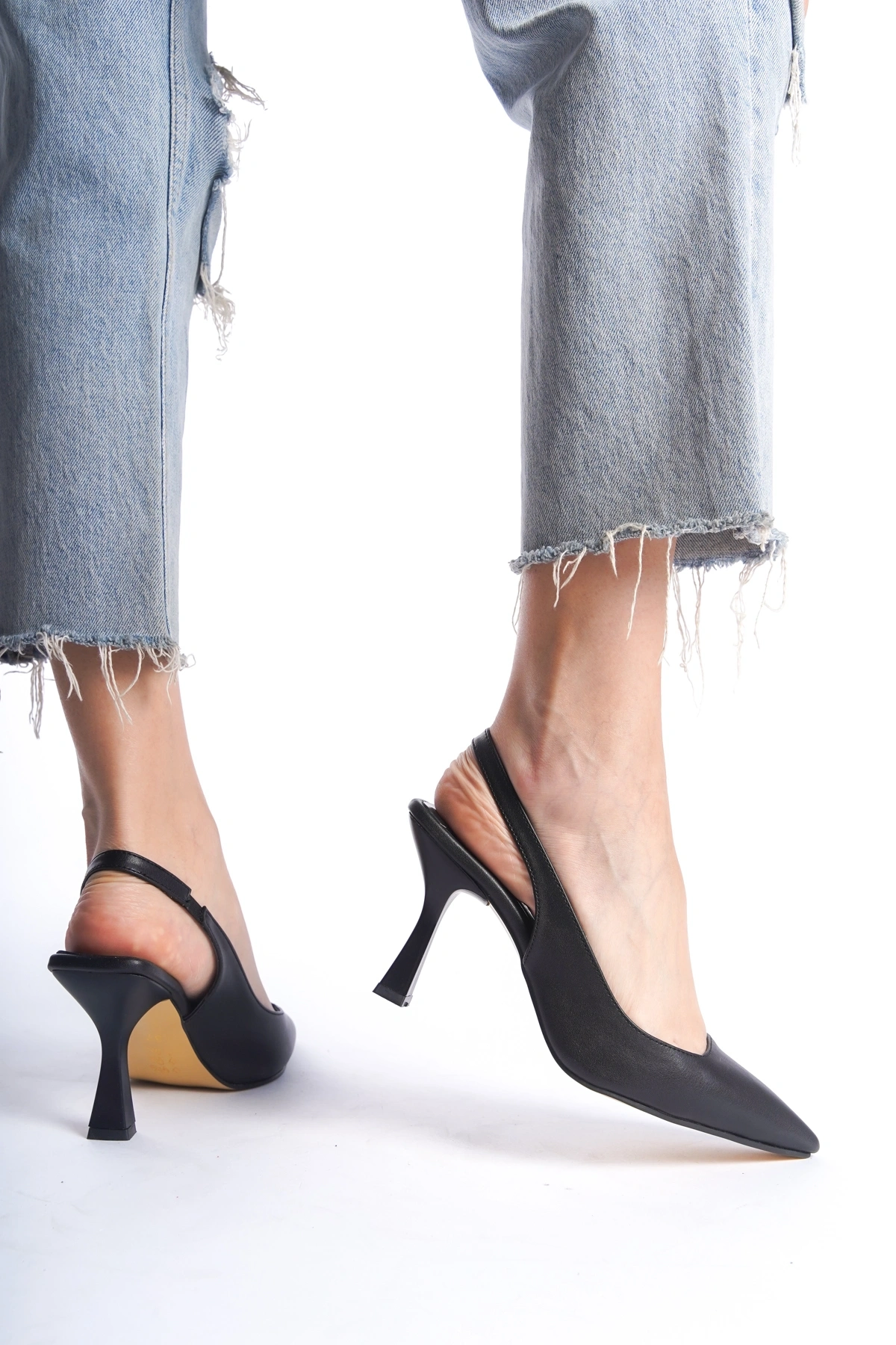 Kadın Arkası Açık Lastikli Rahat Taban Kadeh Topuk Stiletto Ayakkabı Topuk 7cm