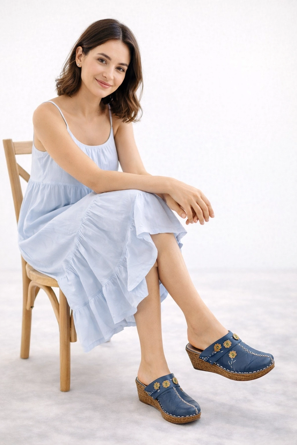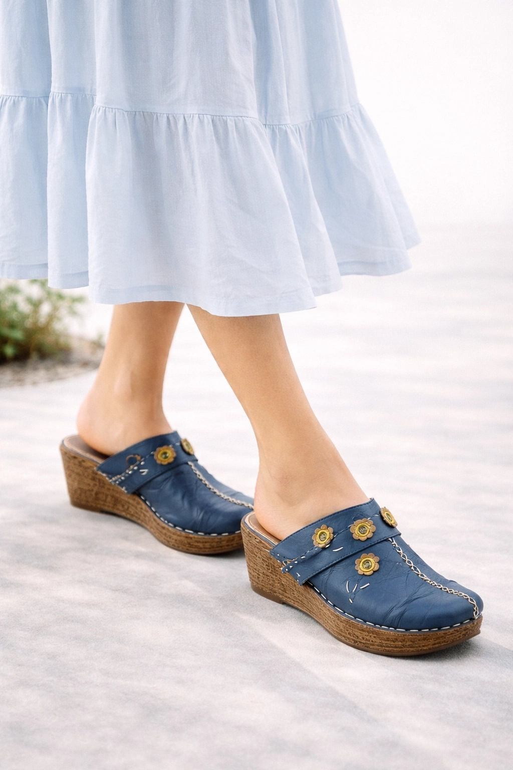 - Topuk yüksekliği: 7 cm (rahat wedge boyu, yürümeyi kolaylaştırır)