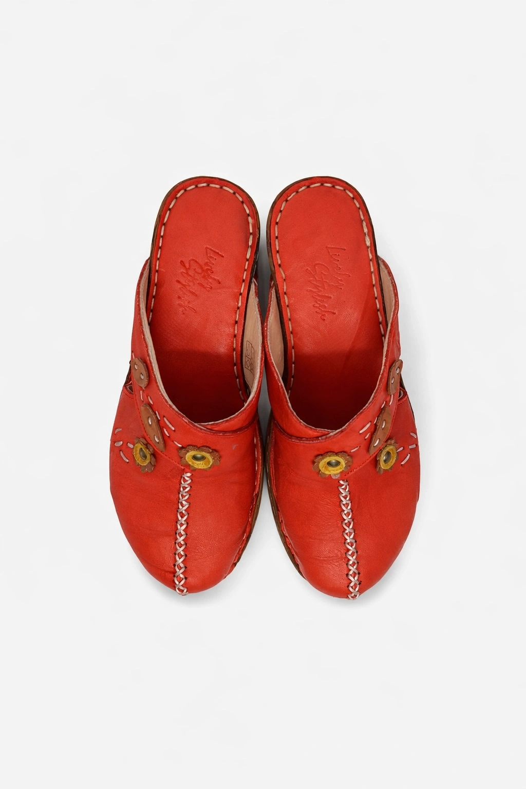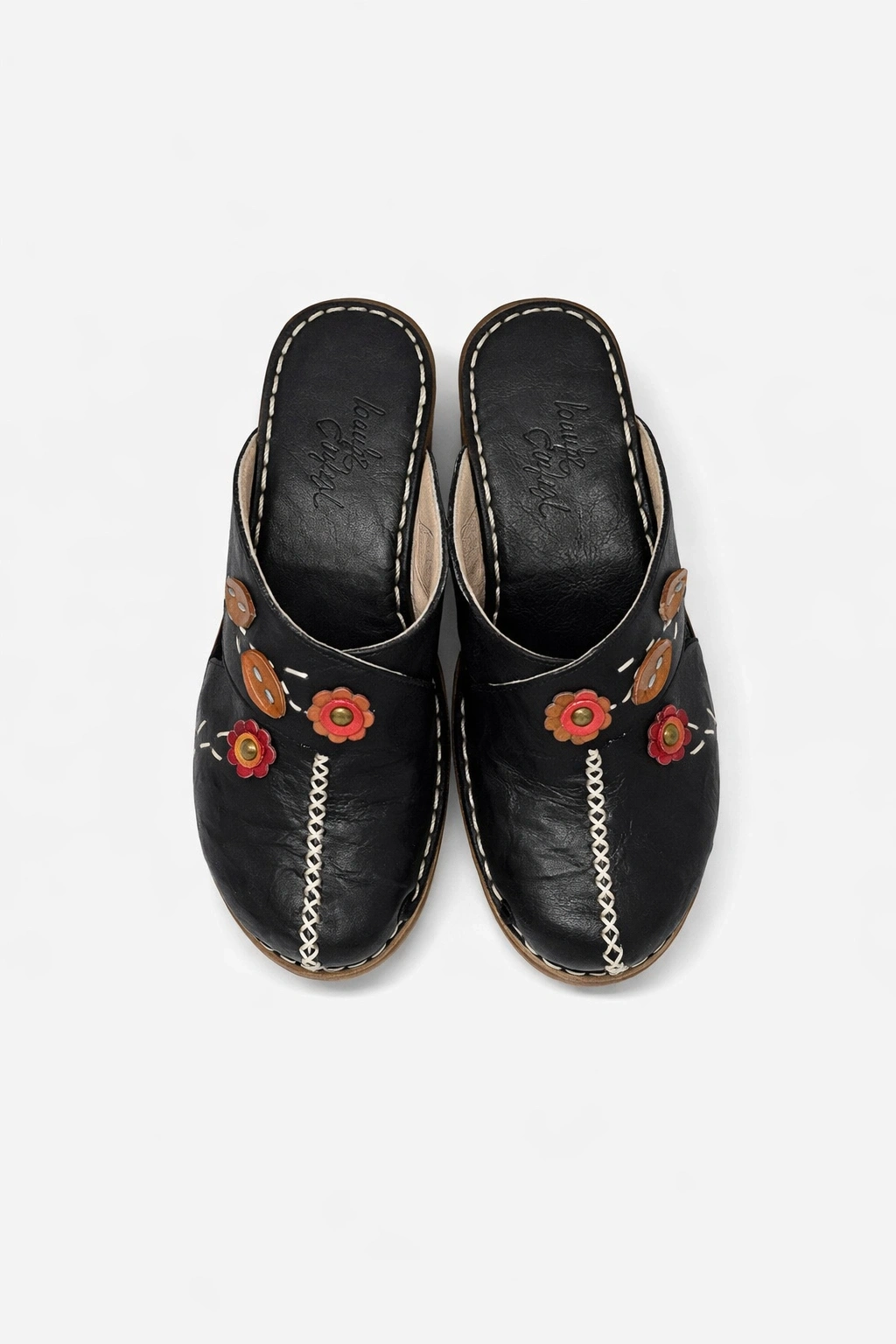 Bu şık çorap terlik, yumuşak hakiki deri üst kısım ile ayaklarınıza nefes aldırırken, göz alıcı tonları ve el yapımı görünümlü çiçek aplikeleriyle dikkat çekiyor. Sarı-turuncu çiçek detayları, yaprak motifleri ve beyaz dikiş detayları ile vintage-bohem ruhunu yansıtıyor. Ayak bileği kısmındaki ayarlanabilir kayış sayesinde mükemmel oturuş sağlarken, ön kısımda açık tasarım ferahlık katıyor.
