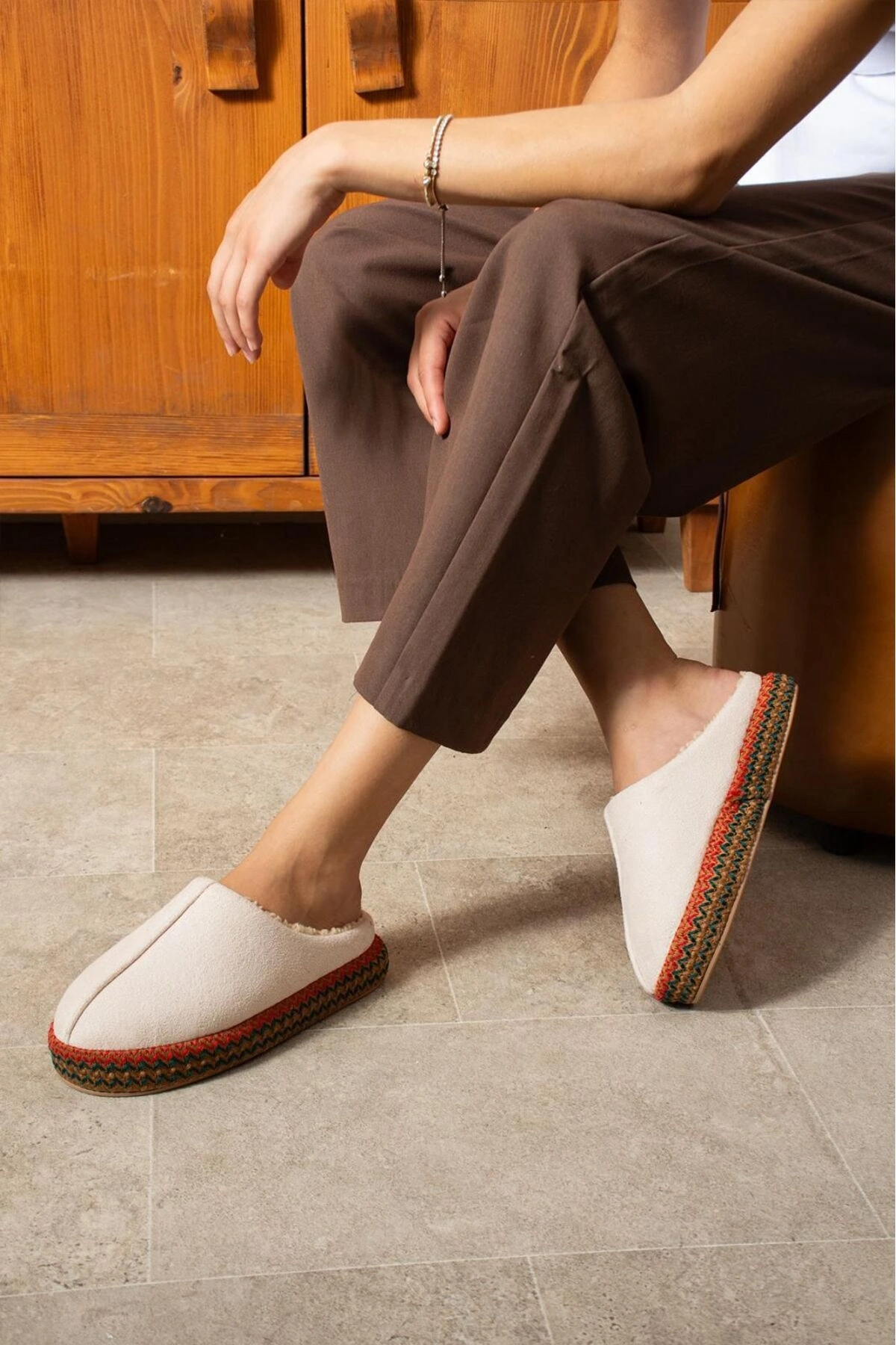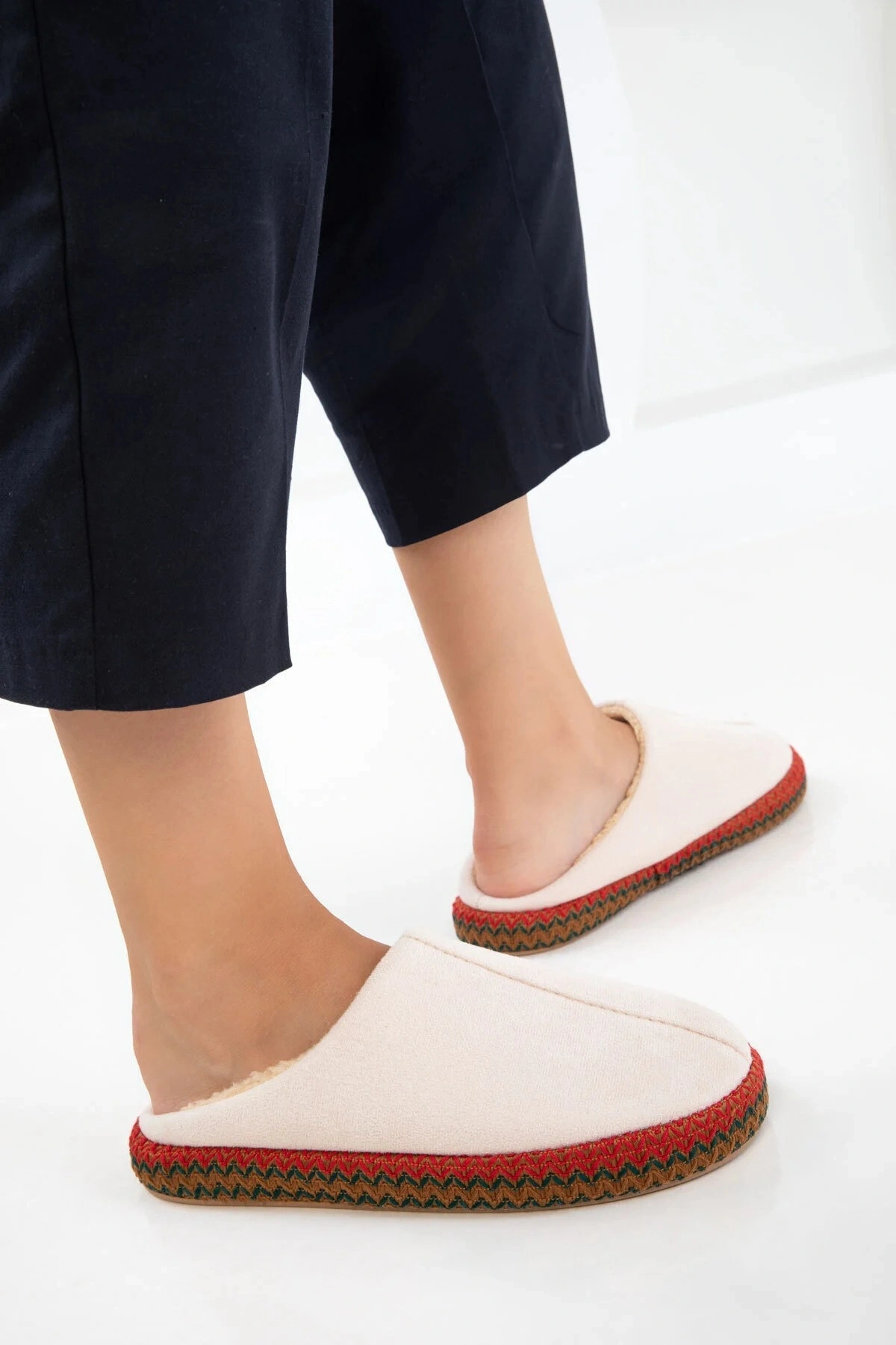 - Yumuşak peluş astar materyali ile ayaklarınızı sıcacık tutar ve konfor sağlar.; - İç tabanda kullanılan peluş malzeme, uzun süreli kullanımlarda bile ayağınıza ekstra rahatlık sunar.; - Suni süet detayları, şıklığı ve dayanıklılığı bir arada sunarak günlük kullanım için idealdir.; - Düz deseniyle sade ve zamansız bir görünüm elde edersiniz; her türlü kıyafetle kolayca uyum sağlar.; - Casual ortamlarda rahatlıkla tercih edebileceğiniz bu ev terliği, günlük aktivitelerinizde size eşlik eder.; - Suni deriden üretilmiş saya materyali sayesinde dayanıklılık ve estetik bir görünüm kazandırılır.; - "Cool & comfort" persona özelliğiyle hem stil sahibi hem de pratik bir seçim yapmış olursunuz.; - Kış sezonuna özel tasarlanmış olup soğuk havalarda ayaklarınızın korunmasına yardımcı olur.; - EVA taban materyali hafiflik sağlarken aynı zamanda esneklik sunarak adımlarınızda maksimum konfor vaad eder.; - Bağcıksız tasarım sayesinde giyip çıkarması kolaydır; zamandan tasarruf etmenizi sağlar.; - Düz topuklu yapısı ile stabiliteyi arttırarak gün boyu rahat hareket etmenize olanak tanır.; - Kadın / kız kullanıcılar için idealdir; her yaş grubuna hitap edecek şekilde tasarlanmıştır.; - Türkiye'de üretilmiş olması yerel üretim tercihlerinizi destekleyerek ülke ekonomisine katkıda bulunur.;