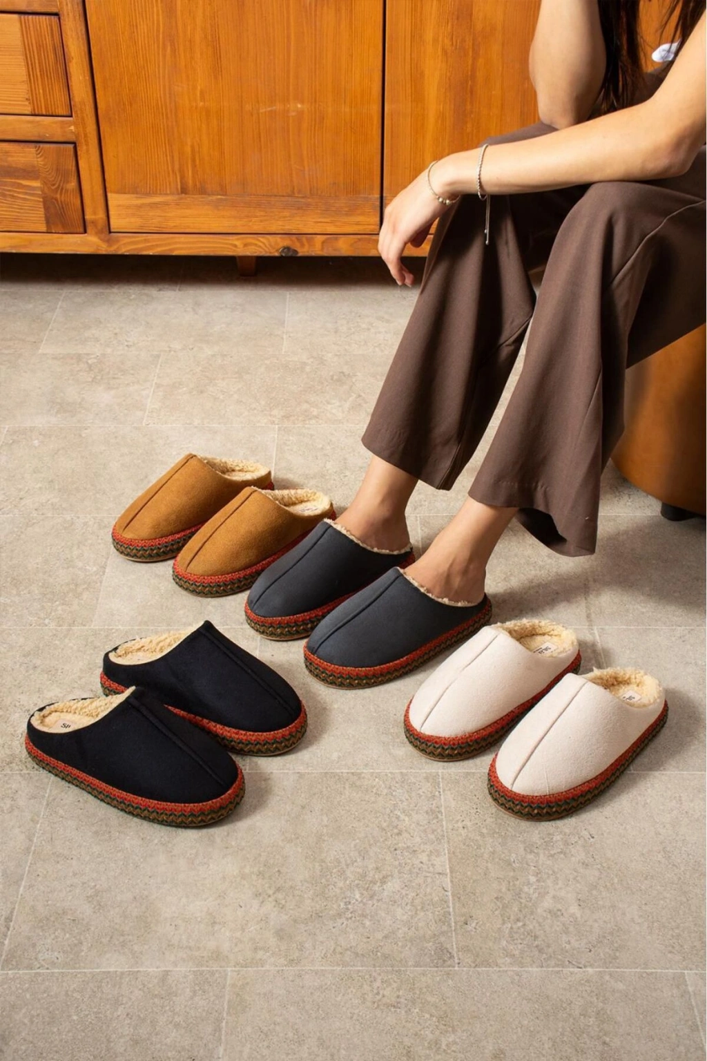 - Yumuşak peluş astar materyali ile ayaklarınızı sıcacık tutar ve konfor sağlar.; - İç tabanda kullanılan peluş malzeme, uzun süreli kullanımlarda bile ayağınıza ekstra rahatlık sunar.; - Suni süet detayları, şıklığı ve dayanıklılığı bir arada sunarak günlük kullanım için idealdir.; - Düz deseniyle sade ve zamansız bir görünüm elde edersiniz; her türlü kıyafetle kolayca uyum sağlar.; - Casual ortamlarda rahatlıkla tercih edebileceğiniz bu ev terliği, günlük aktivitelerinizde size eşlik eder.; - Suni deriden üretilmiş saya materyali sayesinde dayanıklılık ve estetik bir görünüm kazandırılır.; - "Cool & comfort" persona özelliğiyle hem stil sahibi hem de pratik bir seçim yapmış olursunuz.; - Kış sezonuna özel tasarlanmış olup soğuk havalarda ayaklarınızın korunmasına yardımcı olur.; - EVA taban materyali hafiflik sağlarken aynı zamanda esneklik sunarak adımlarınızda maksimum konfor vaad eder.; - Bağcıksız tasarım sayesinde giyip çıkarması kolaydır; zamandan tasarruf etmenizi sağlar.; - Düz topuklu yapısı ile stabiliteyi arttırarak gün boyu rahat hareket etmenize olanak tanır.; - Kadın / kız kullanıcılar için idealdir; her yaş grubuna hitap edecek şekilde tasarlanmıştır.; - Türkiye'de üretilmiş olması yerel üretim tercihlerinizi destekleyerek ülke ekonomisine katkıda bulunur.;