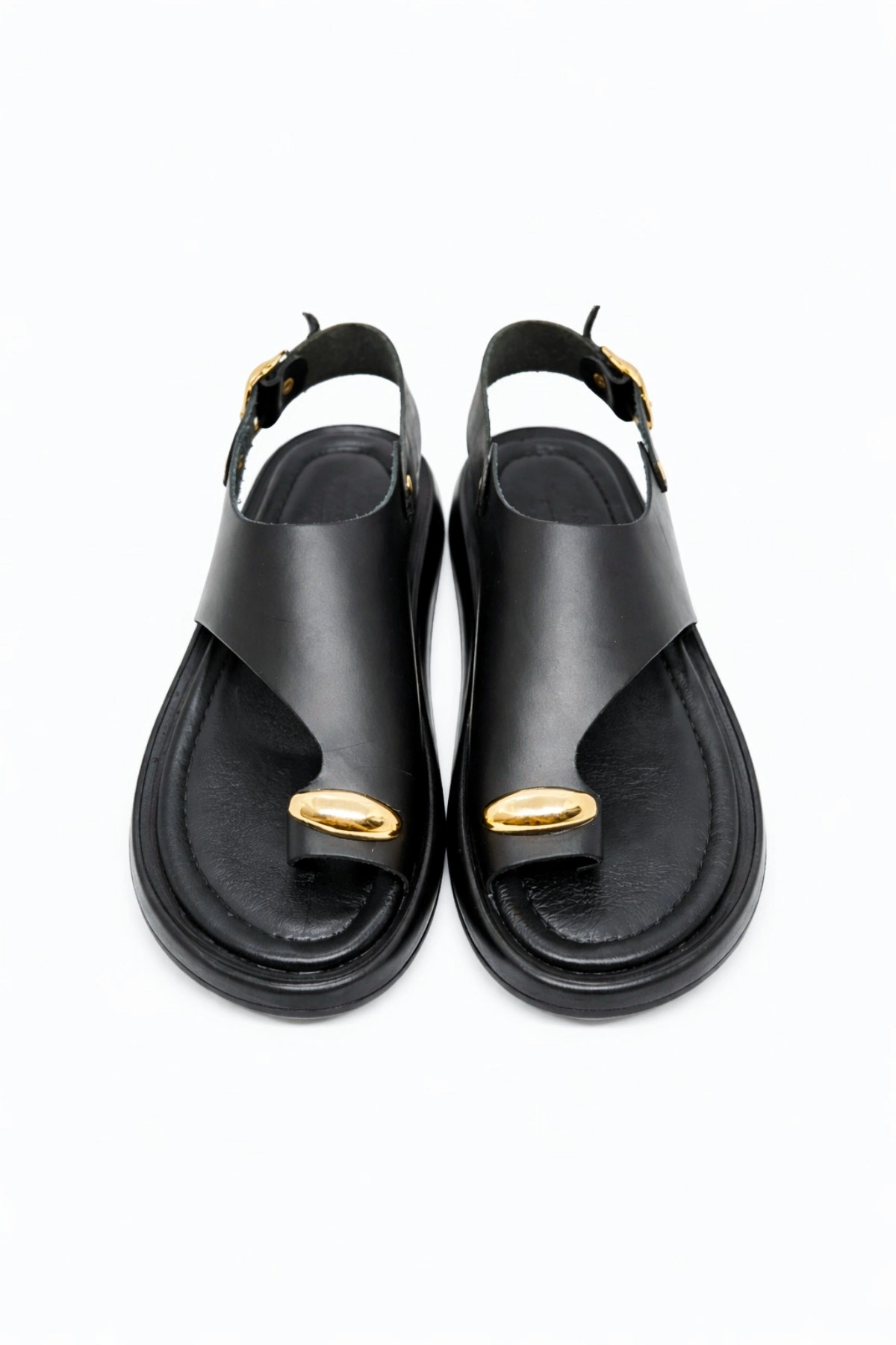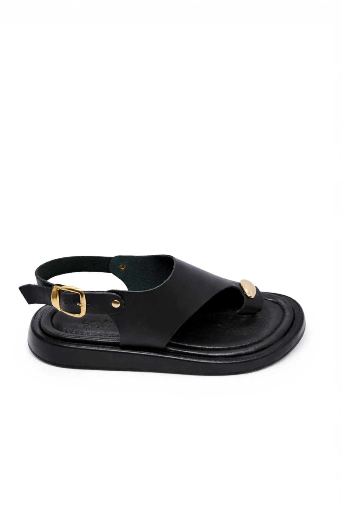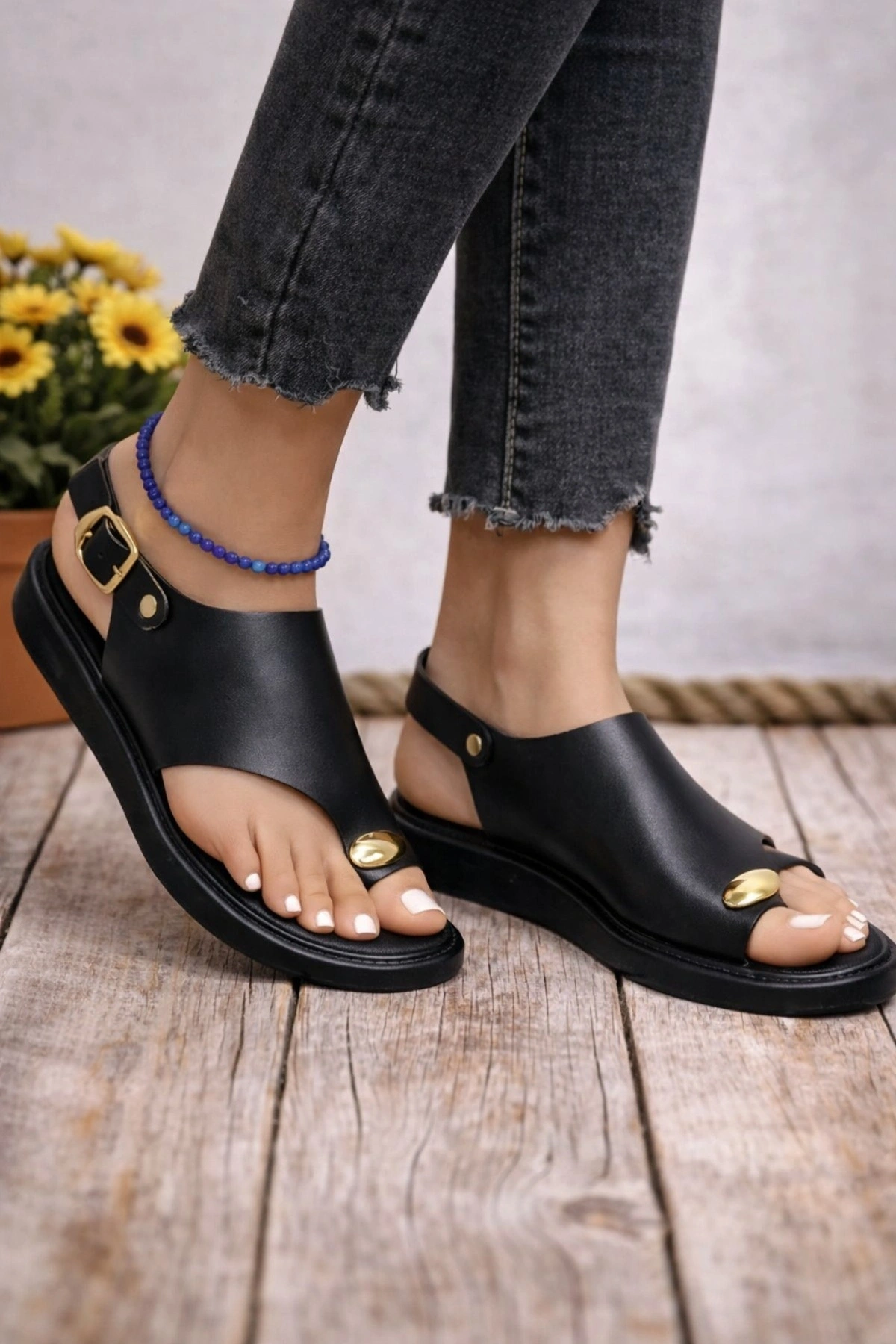 Larina Kadın Hakiki Deri Parmak Arası Gold Toka Detaylı Konforlu Günlük Sandalet