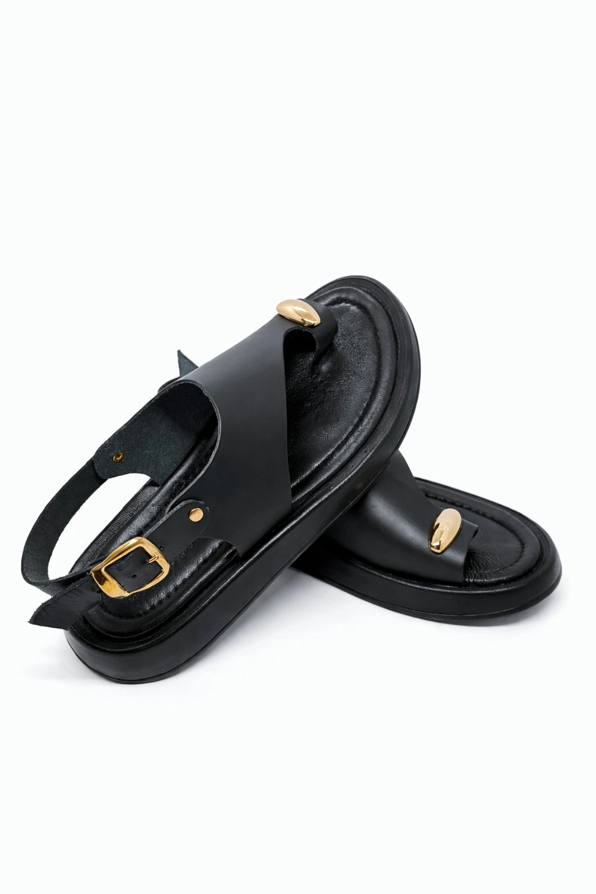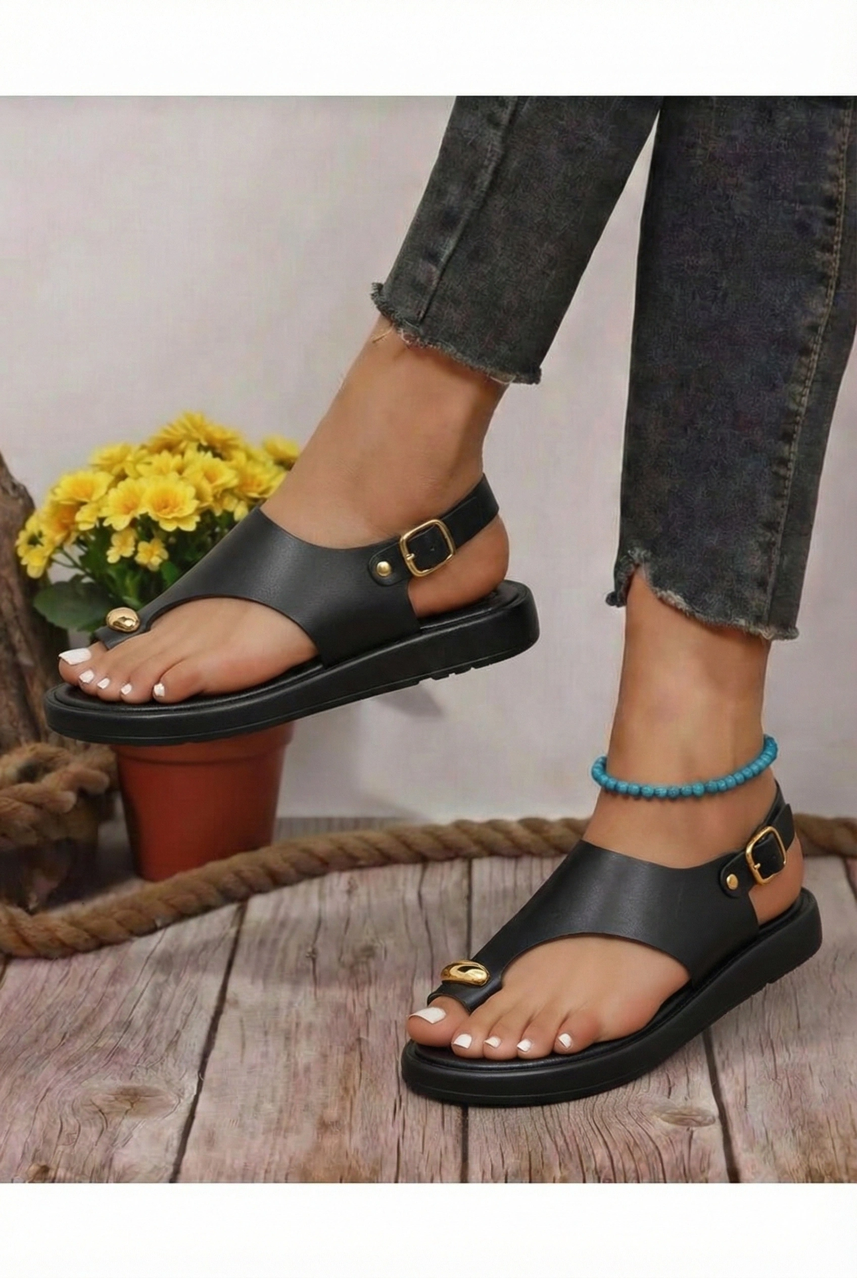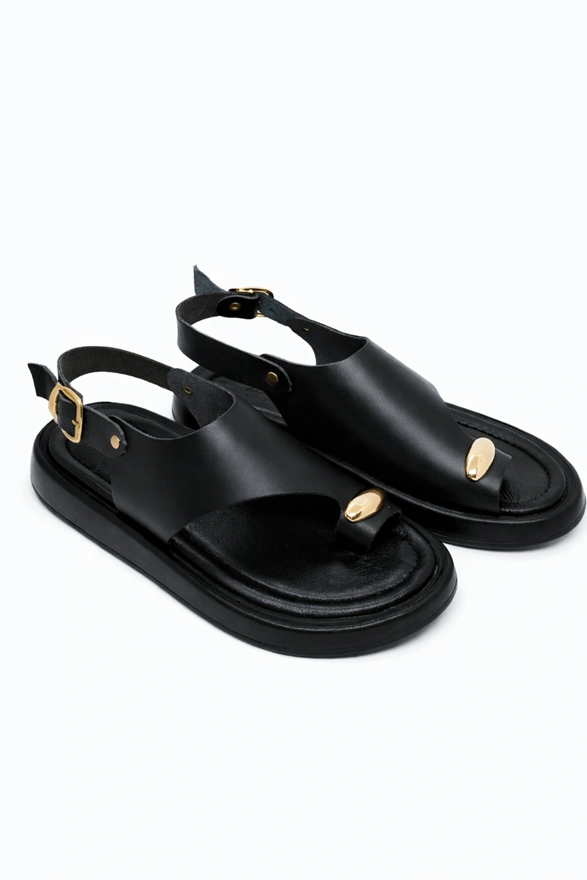 Larina Kadın Hakiki Deri Parmak Arası Gold Toka Detaylı Konforlu Günlük Sandalet