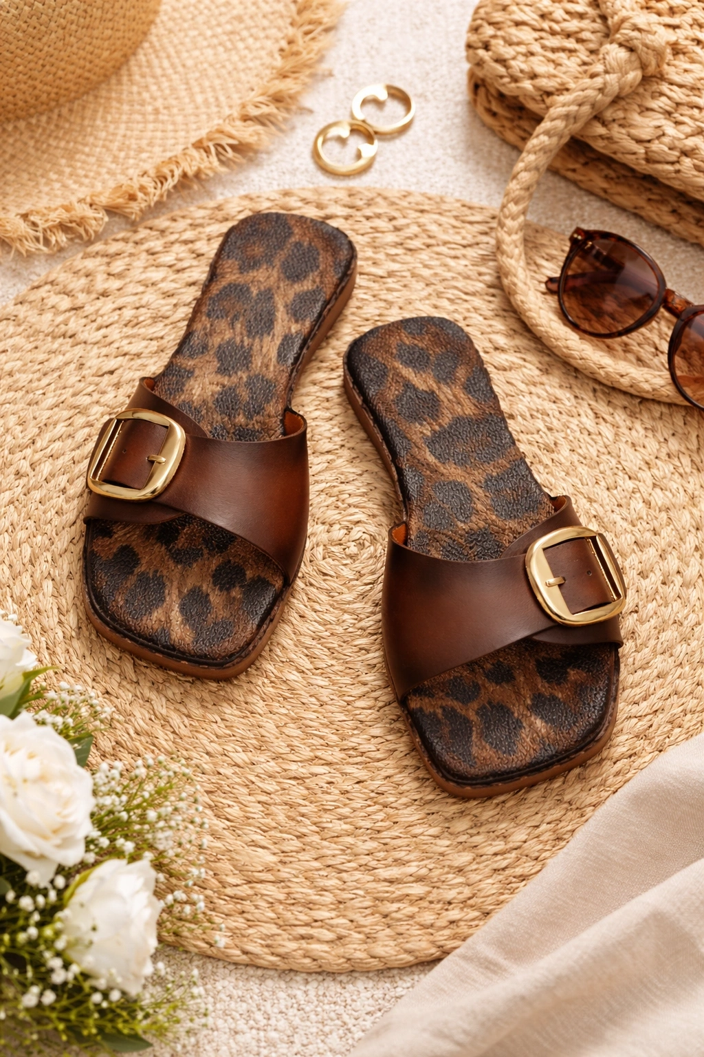 Leda Kadın Toka Detaylı Rahat Kaymaz Taban Şık Küt Burun Terlik