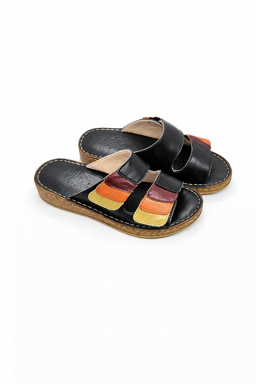 Bu şık çorap terlik, yumuşak hakiki deri üst kısım ile ayaklarınıza nefes aldırırken, göz alıcı tonları ile dikkat çekiyor.