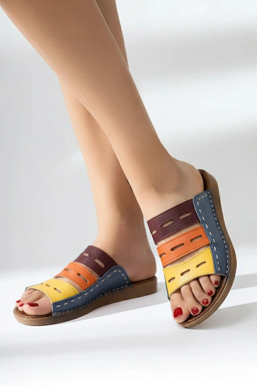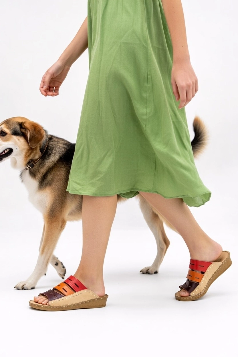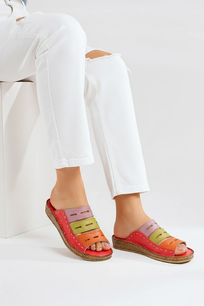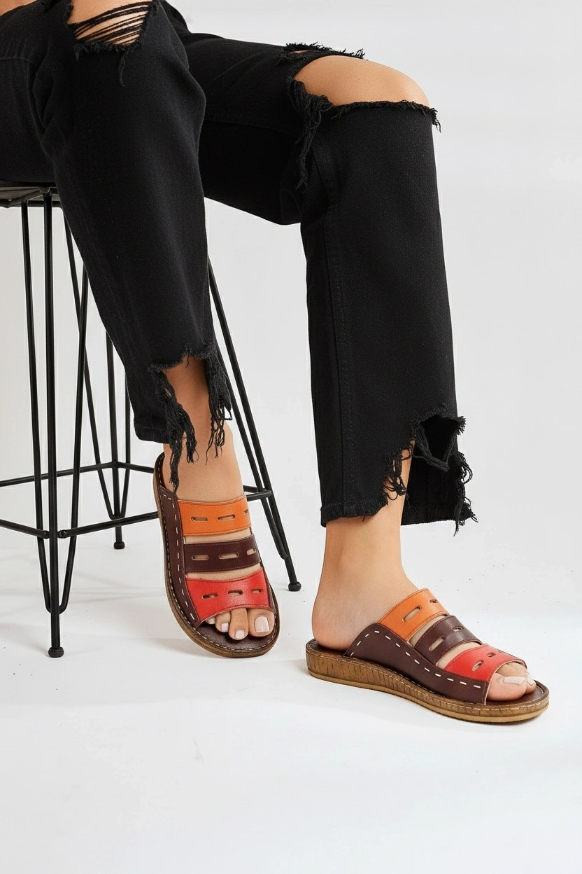 Lucia Kadın Hakiki Deri Kahve Lacivert Taba Siyah Kırmızı Renkli Şık Tasarım Konforlu Terlik