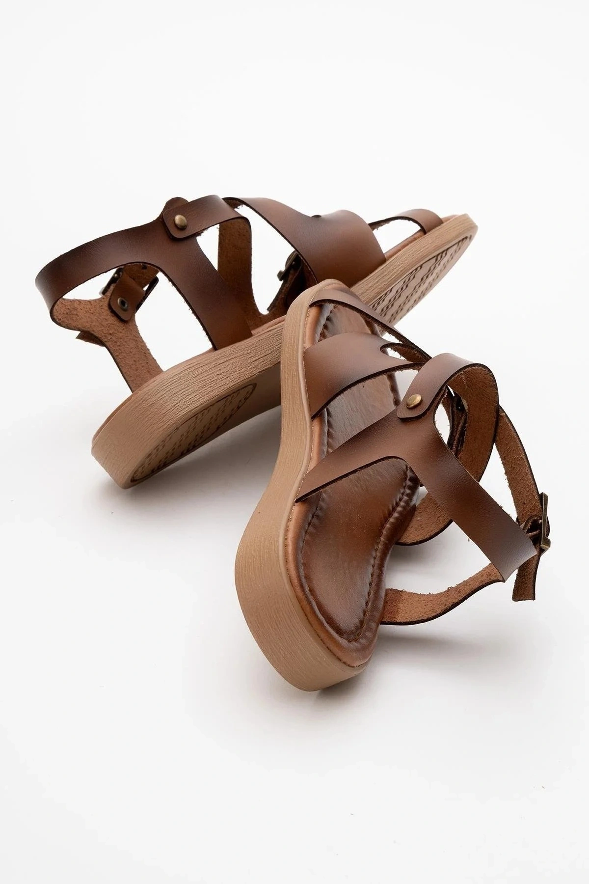 Luna Kadın Taba Hakiki Deri Parmak Arası Düz Günlük Konforlu Sandalet