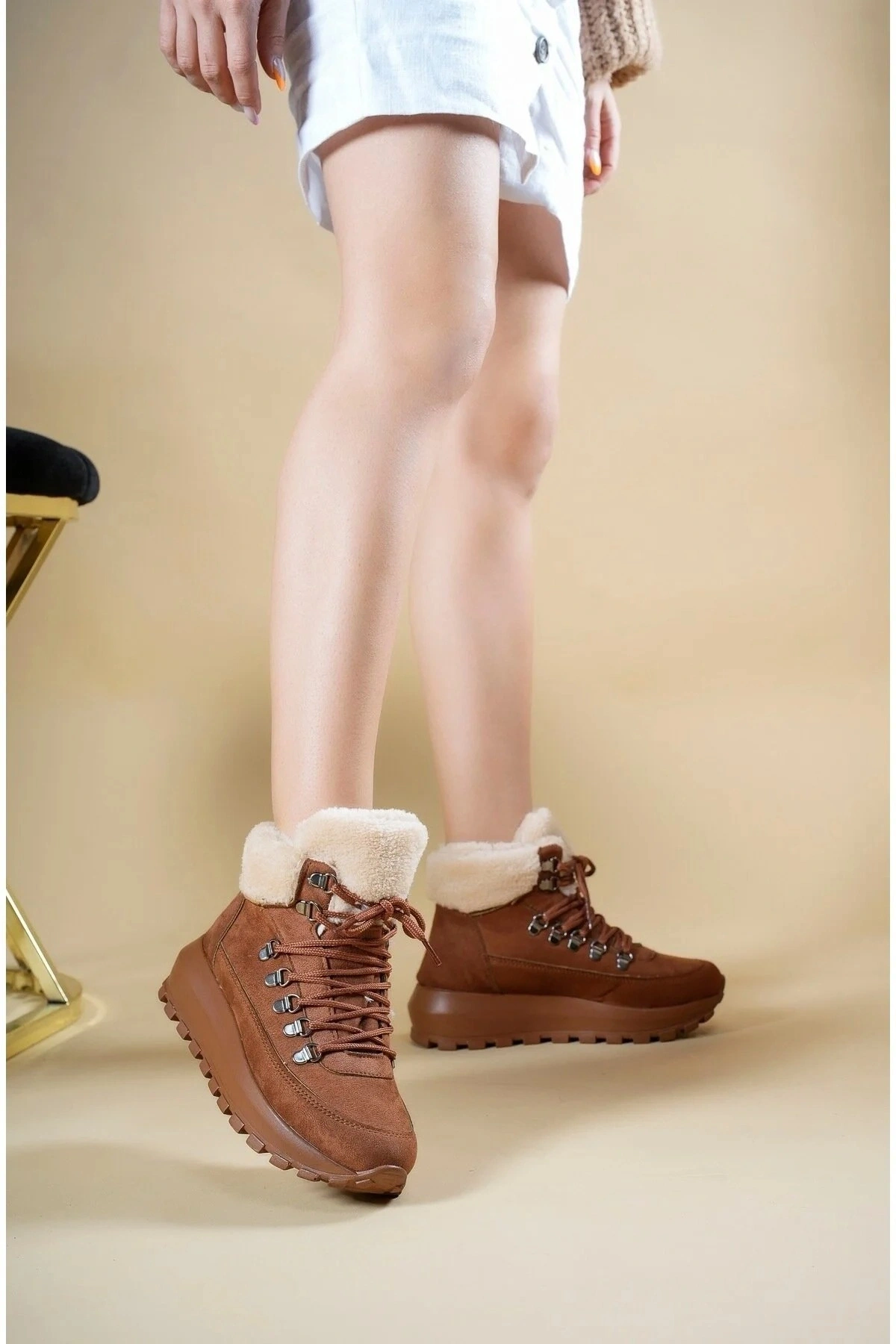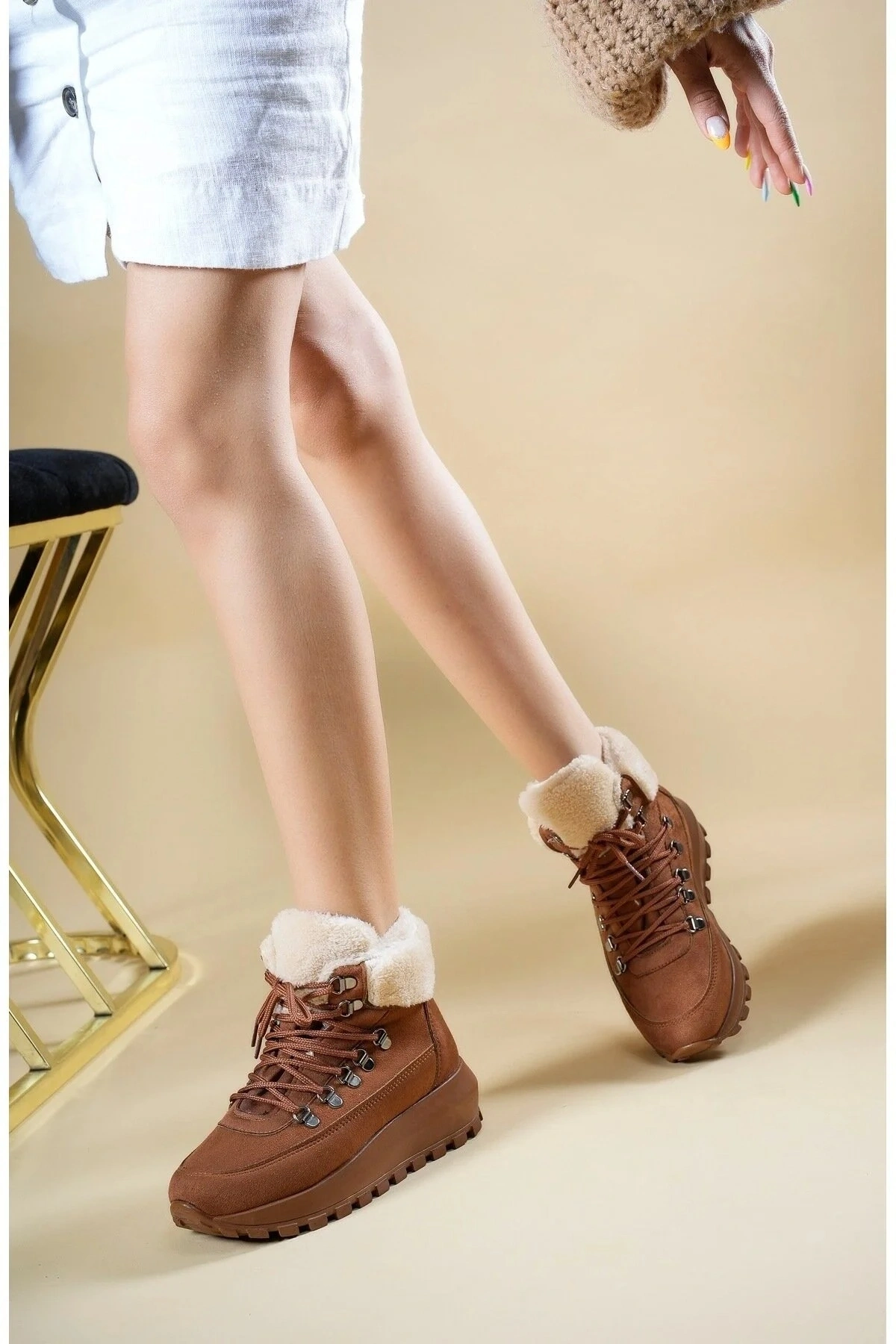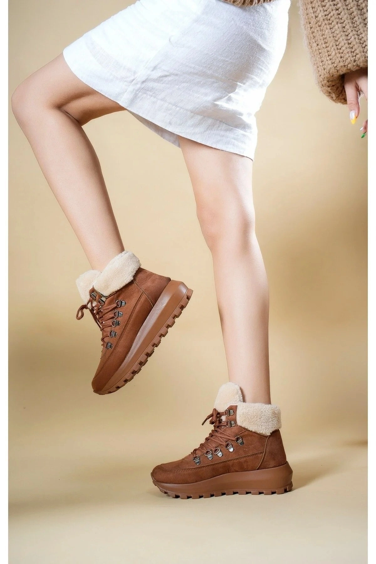 - Günlük kullanım için ideal, casual tarzıyla her ortama uyum sağlayan Melina bot.; - Soğuk havalarda ayaklarınızı sıcak tutan kürklü iç yapısı ile kış mevsiminin vazgeçilmezi.; - Suni deri dış materyali ve tekstil saya materyali ile dayanıklılığı ve konforu bir arada sunar.; - Termoplastik taban materyali sayesinde kaymazlık özelliği ve uzun süreli kullanım imkanı.; - Yuvarlak burun tipi ile rahat bir yürüyüş deneyimi ve şık görünüm.; - Bağcıklı ve fermuarlı tasarımı sayesinde kolay giyilip çıkartılabilir ve ayarlanabilir konfor.; - İç tabanında suni deri ve tekstil kombinasyonu ile ekstra yumuşaklık ve nefes alabilirlik.; - Astar materyalinde de suni deri ve tekstil kullanılarak ayaklarınızın rahat etmesi sağlanır.; - Türkiye'de üretilmiş olmasıyla yerel işçiliği desteklerken kaliteyi garanti eder.; - Düz deseniyle sade ve zamansız bir stil sunarken, her tür kıyafetle kolayca kombinlenebilir.; - 4 cm kalın topuklu tasarım ile hem rahatlık hem de şıklık sağlar.; - Yetişkin yaş grubuna hitap eden bu bot, her adımda konfor ve stil vaat eder.;