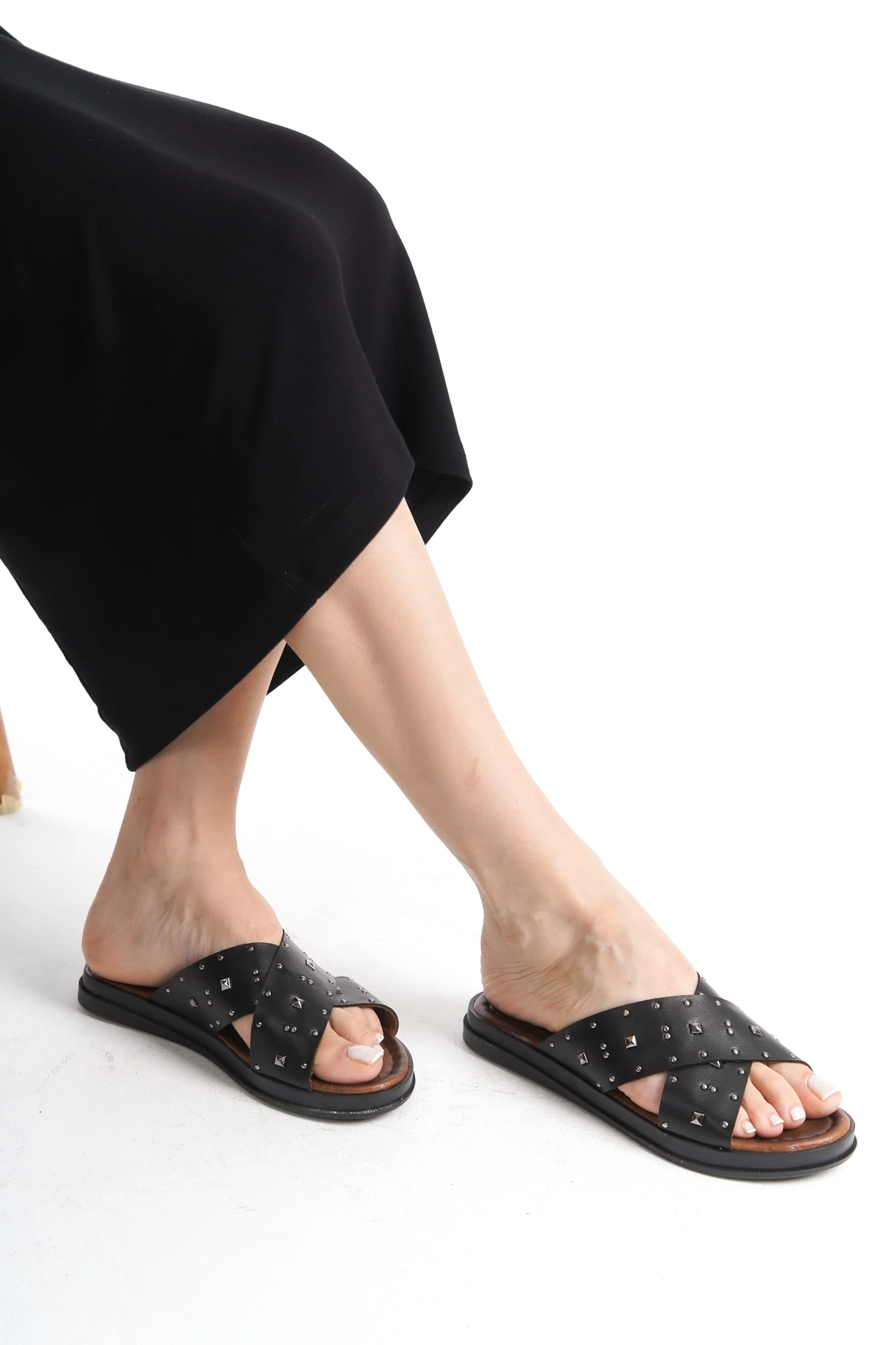 Lali Kadın Siyah Aksesuar Detaylı Rahat Kaymaz Taban Şık Terlik