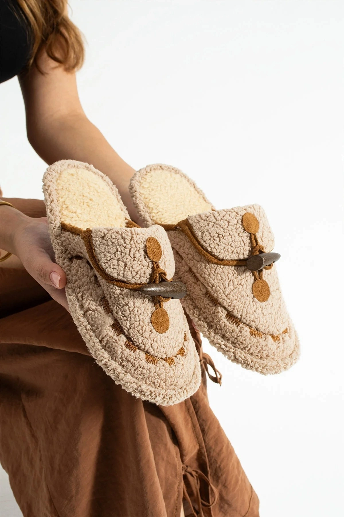 - Yumuşak tekstil saya materyali ile konforlu bir kullanım sunar.; - Esnek poli tabanı sayesinde gün boyu rahatlık sağlar.; - Sade ve şık görünümüyle her türlü ev kıyafetiyle uyum sağlar.; - Düz deseni, zamansız bir stil oluşturmanızı kolaylaştırır.; - İç tabanda kullanılan tekstil malzeme ayaklarınızın nefes almasına olanak tanır.; - Astar kısmında da kaliteli tekstil materyali tercih edilmiştir; böylece uzun süreli konfor elde edersiniz.; - Peluş dış yüzeyi ile yumuşak dokunuşu hissedebilirsiniz; bu da ekstra sıcaklık ve rahatlık sunar.; - Kutulu ambalajıyla hediye olarak da tercih edilebilir; hem pratik hem de estetik bir paketleme seçeneği sunar.; - Cool & comfort persona özellikleriyle günlük yaşamda rahatlıkla kullanılabilir; gündüzden geceye her ortama uygunluk gösterir.; - Boncuk detayları ile göz alıcı bir tasarıma sahip olurken aynı zamanda kişisel zevkinizi yansıtmanız için idealdir.; - Yetişkin yaş grubuna hitap eden tasarım, geniş kullanıcı kitlesine uyumluluk sağlar.; - Düz topuklu yapısıyla stabiliteyi artırarak adımlarınızda güven verir.; - Türkiye menşeli olması yerel üretim avantajını beraberinde getirirken, kalite standartlarına bağlı kalındığının göstergesi olur.; - Kadın / kız cinsiyetine yönelik tasarlanmış bu terliklerle feminen tarza katkıda bulunursunuz.;