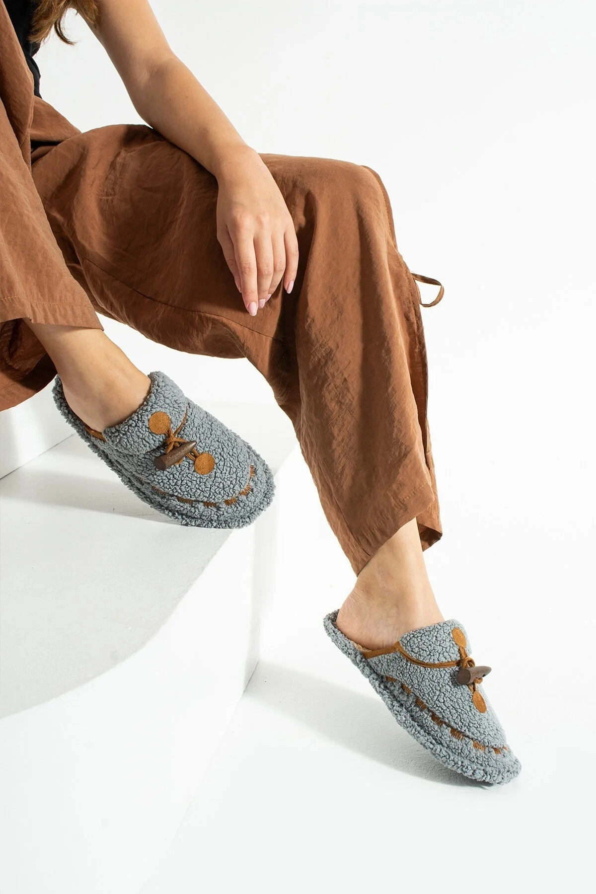 - Yumuşak tekstil saya materyali ile konforlu bir kullanım sunar.; - Esnek poli tabanı sayesinde gün boyu rahatlık sağlar.; - Sade ve şık görünümüyle her türlü ev kıyafetiyle uyum sağlar.; - Düz deseni, zamansız bir stil oluşturmanızı kolaylaştırır.; - İç tabanda kullanılan tekstil malzeme ayaklarınızın nefes almasına olanak tanır.; - Astar kısmında da kaliteli tekstil materyali tercih edilmiştir; böylece uzun süreli konfor elde edersiniz.; - Peluş dış yüzeyi ile yumuşak dokunuşu hissedebilirsiniz; bu da ekstra sıcaklık ve rahatlık sunar.; - Kutulu ambalajıyla hediye olarak da tercih edilebilir; hem pratik hem de estetik bir paketleme seçeneği sunar.; - Cool & comfort persona özellikleriyle günlük yaşamda rahatlıkla kullanılabilir; gündüzden geceye her ortama uygunluk gösterir.; - Boncuk detayları ile göz alıcı bir tasarıma sahip olurken aynı zamanda kişisel zevkinizi yansıtmanız için idealdir.; - Yetişkin yaş grubuna hitap eden tasarım, geniş kullanıcı kitlesine uyumluluk sağlar.; - Düz topuklu yapısıyla stabiliteyi artırarak adımlarınızda güven verir.; - Türkiye menşeli olması yerel üretim avantajını beraberinde getirirken, kalite standartlarına bağlı kalındığının göstergesi olur.; - Kadın / kız cinsiyetine yönelik tasarlanmış bu terliklerle feminen tarza katkıda bulunursunuz.;