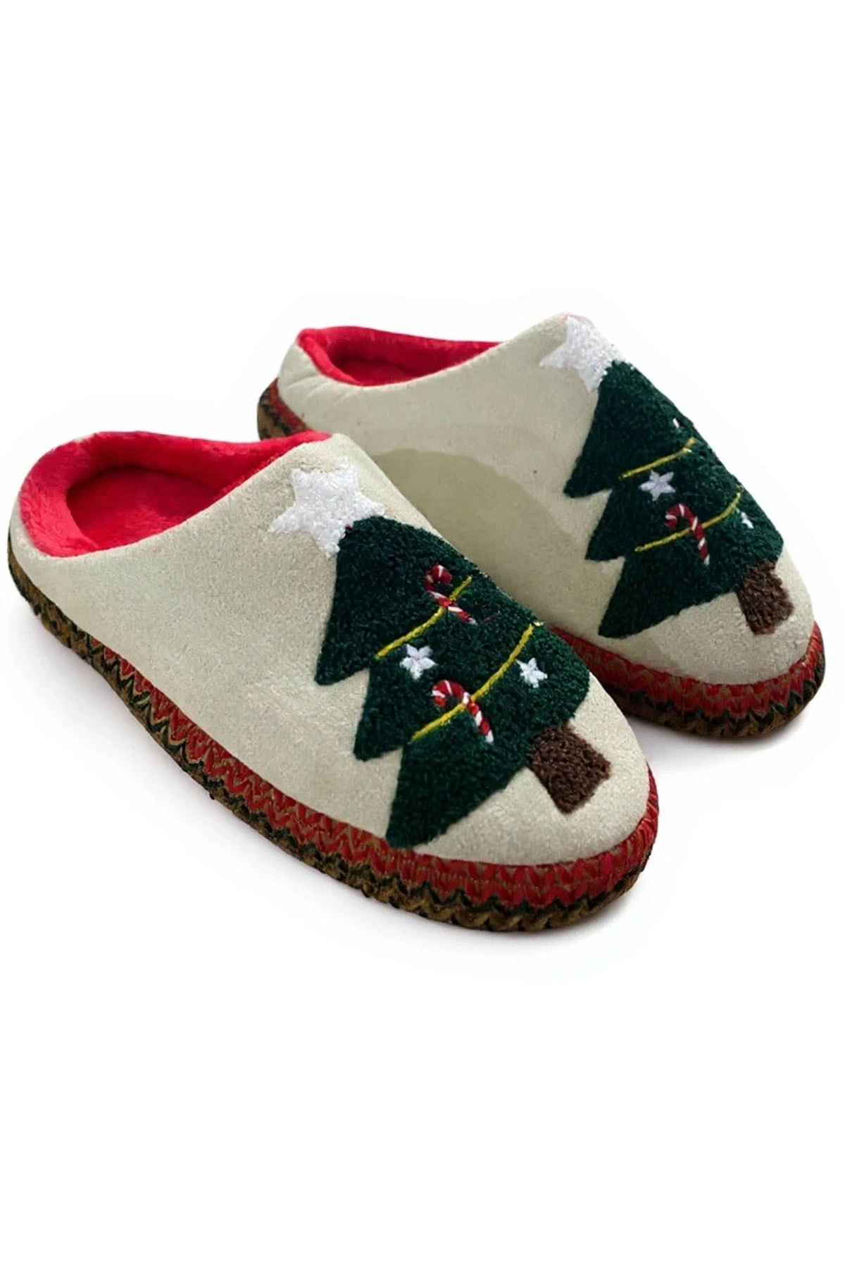 Noel Ağacı Nakışlı Yılbaşı Hediyelik Panduf Ev Terliği