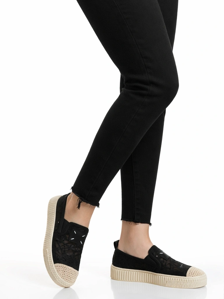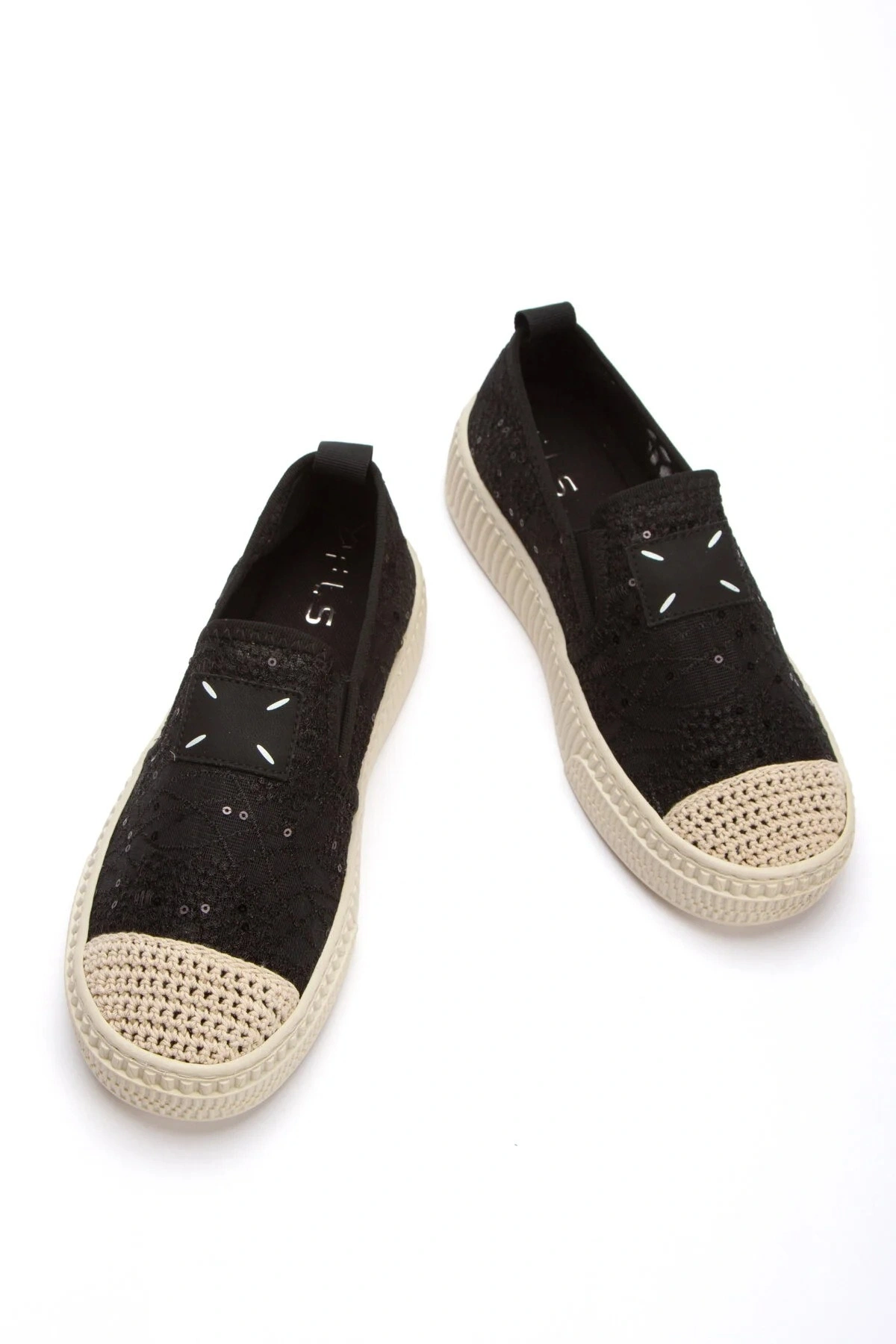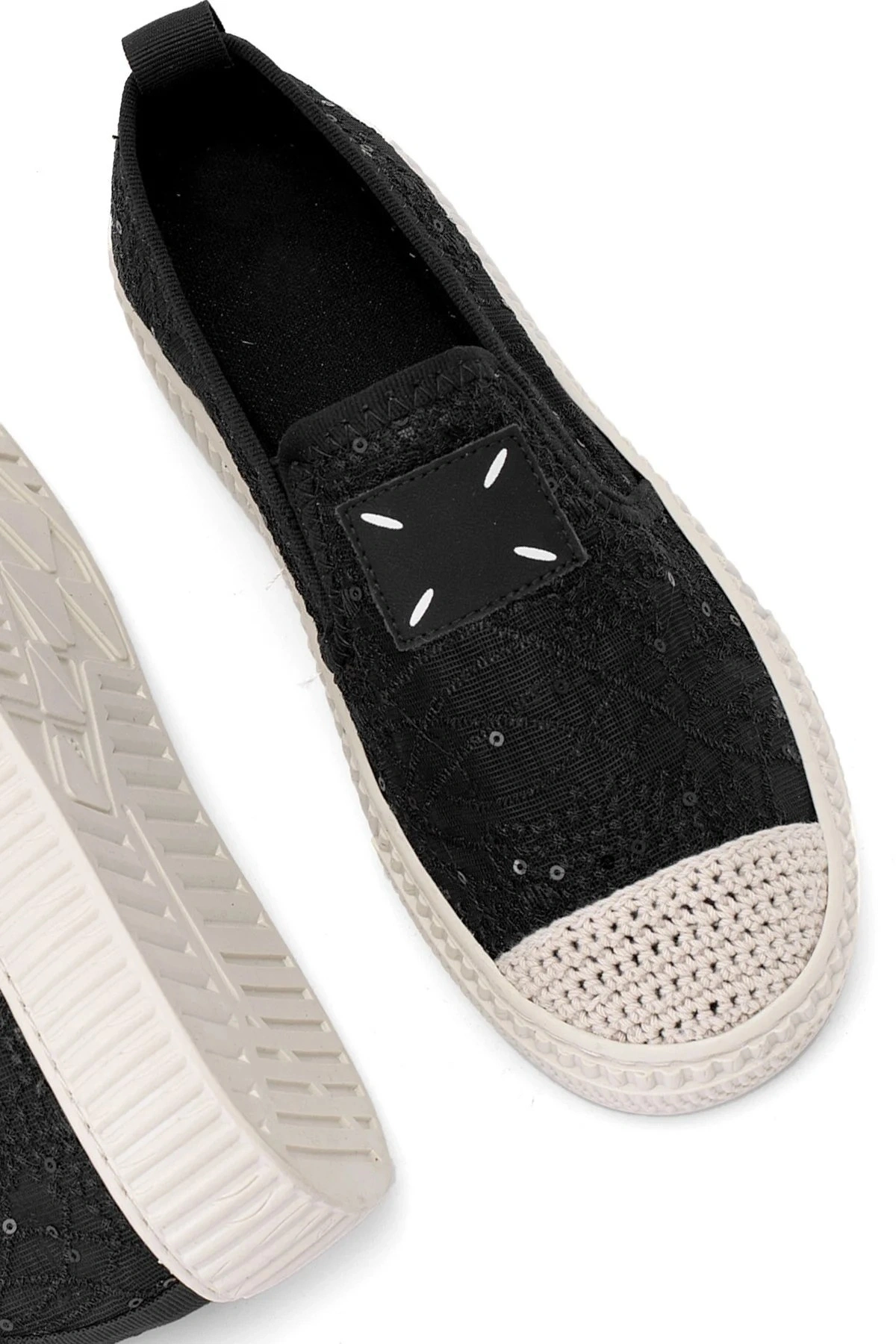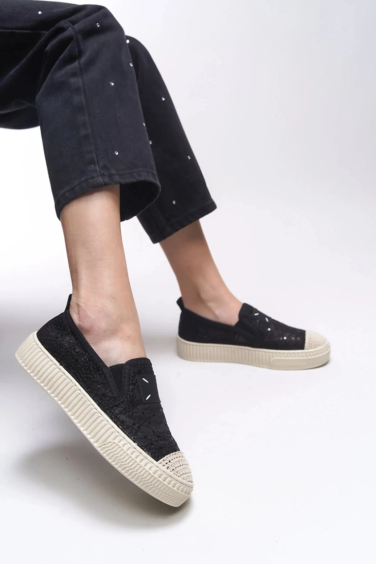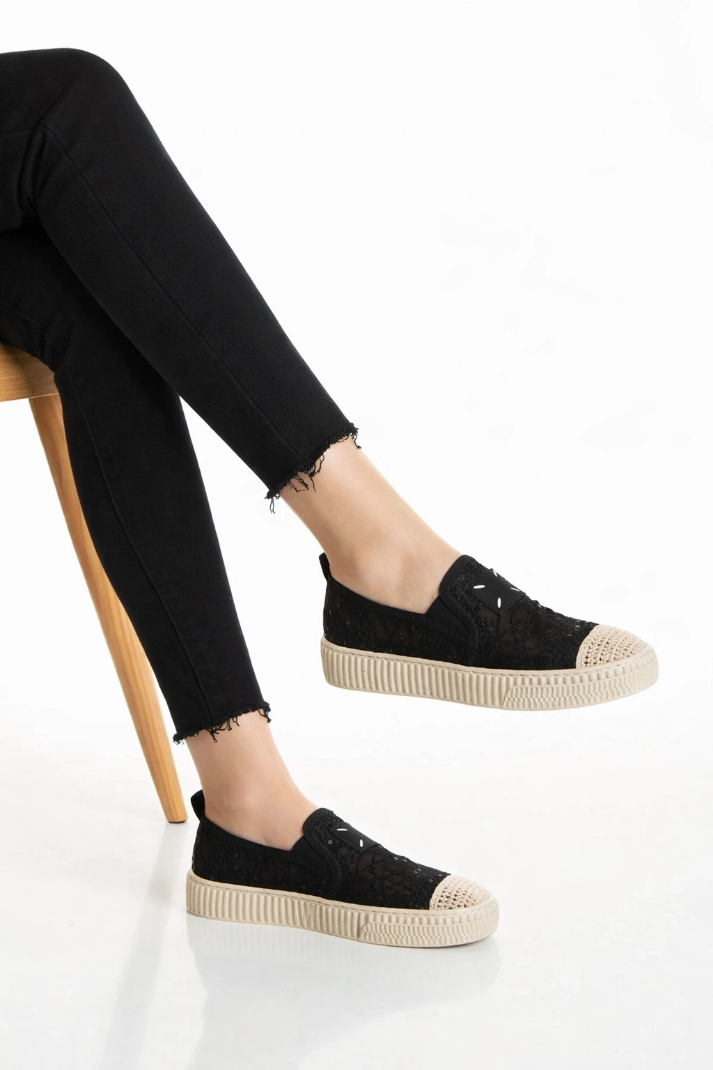 Renda Siyah Dantel Örgülü Rahat Taban Günlük Ayakkabı