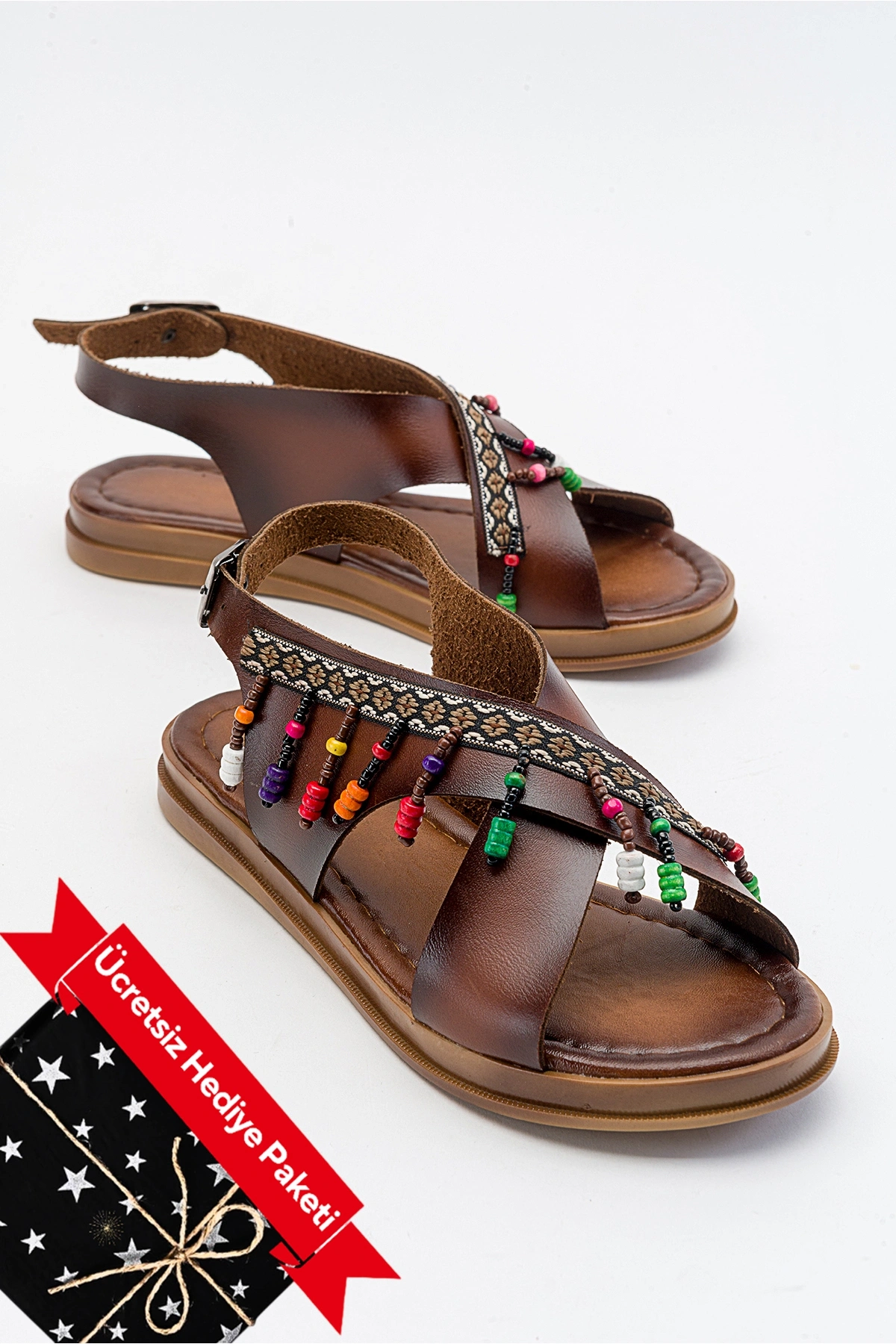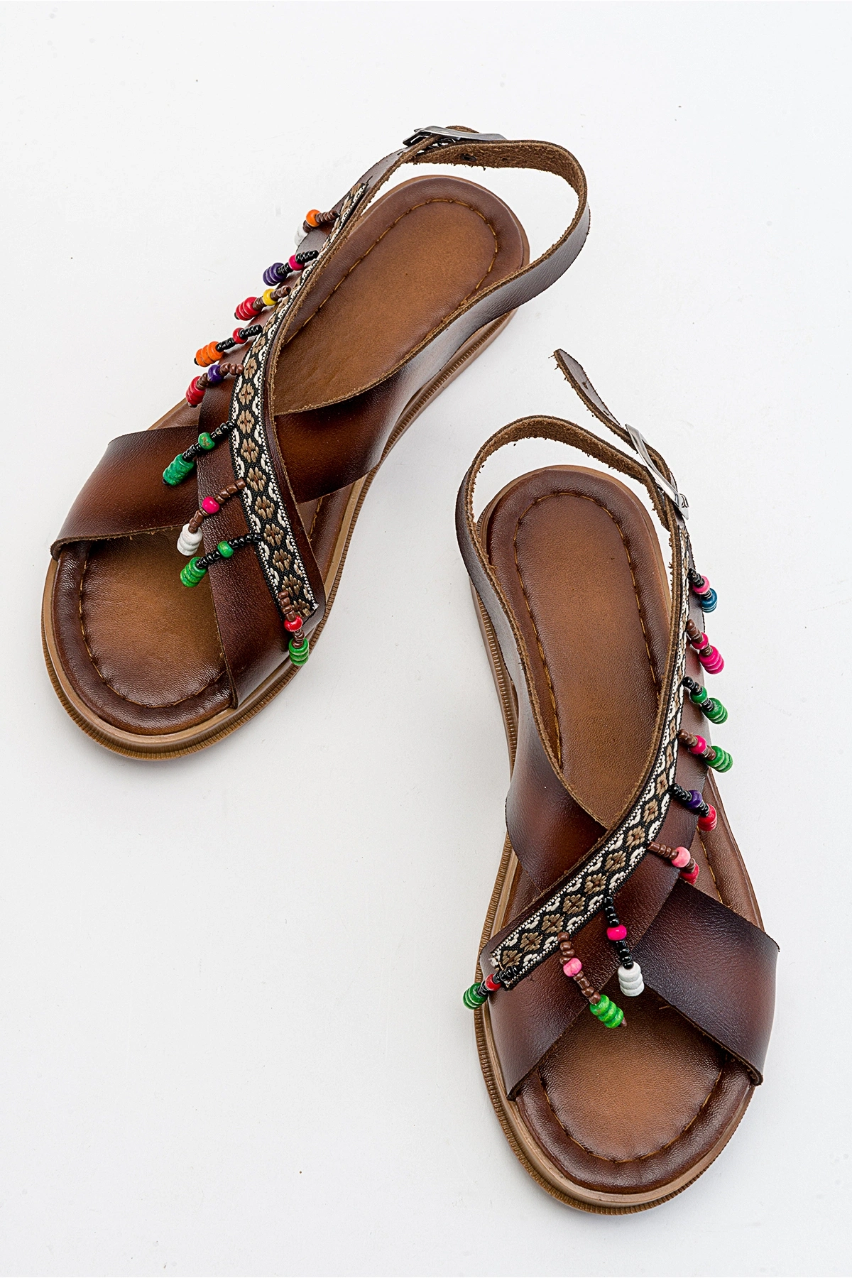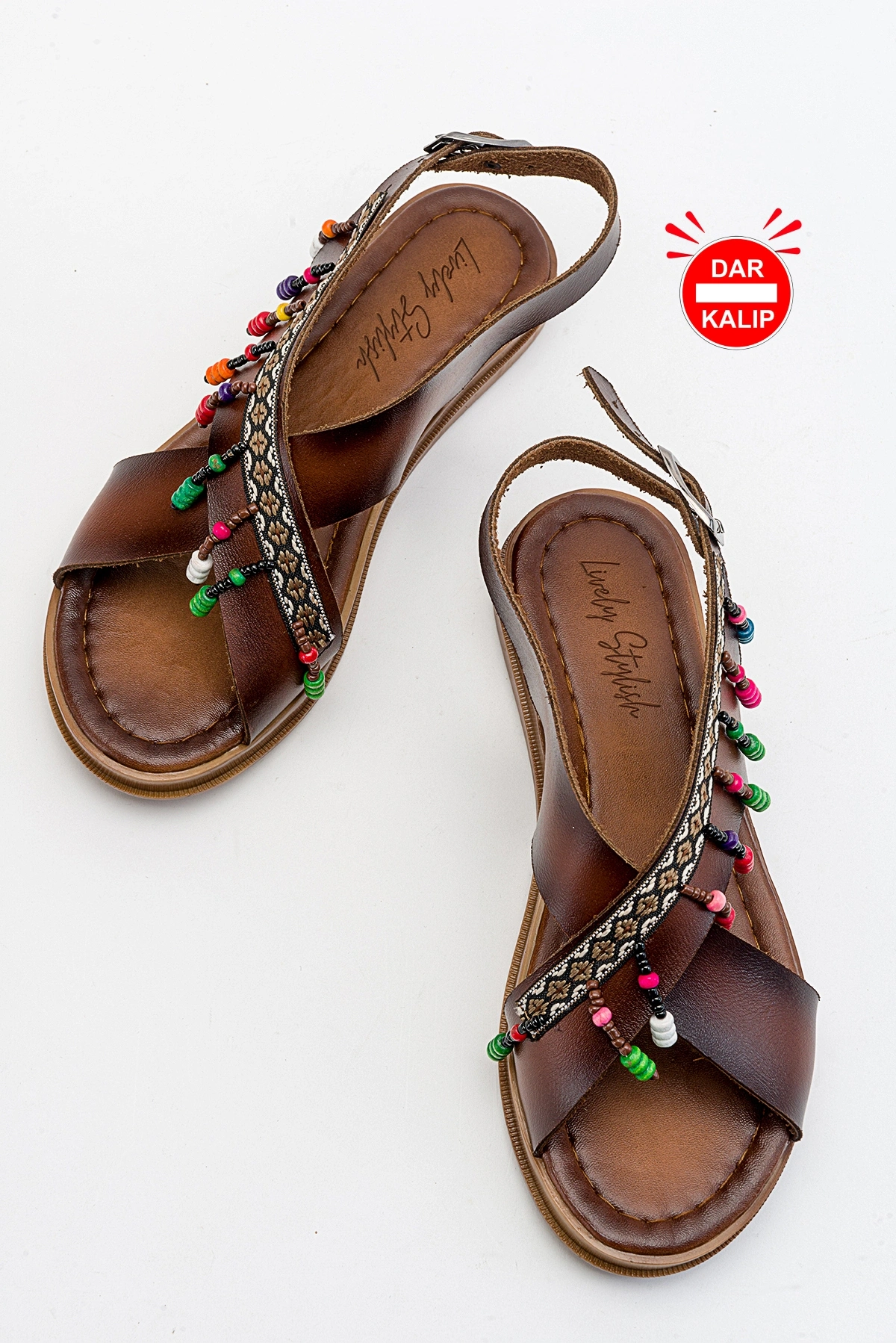 Rahatlıkla gün boyu kullanım için ideal, kısa topuklu (2 cm) tasarımıyla konforlu bir yürüyüş deneyimi sunar; Hakiki deri astar materyali sayesinde ayaklarınızın nefes almasını sağlar ve uzun süreli kullanımlarda bile rahatlık sunar; Saya kısmında kullanılan hakiki deri malzeme, dayanıklılığı artırırken şık bir görünüm kazandırır; İç tabanda da hakiki deri tercih edilerek ayak sağlığınız düşünülerek tasarlanmıştır; bu sayede maksimum konfor ve destek sağlanır; Pratik bantlı bağlama şekli ile kolayca giyilip çıkartılabilir ve ayakkabının ayağınıza tam oturmasını sağlar; Sade ve düz deseniyle her türlü kıyafetle kolayca uyum sağlayarak günlük kullanım için idealdir; Lisanslı koleksiyon parçası olarak öne çıkan bu sandalet, kalite ve stilin mükemmel birleşimini temsil eder; Düz topuklu yapısıyla gün içindeki hareket özgürlüğünüzü kısıtlamaz ve dengeli bir yürüyüş deneyimi sunar; Hakiki deri materyali sayesinde uzun;