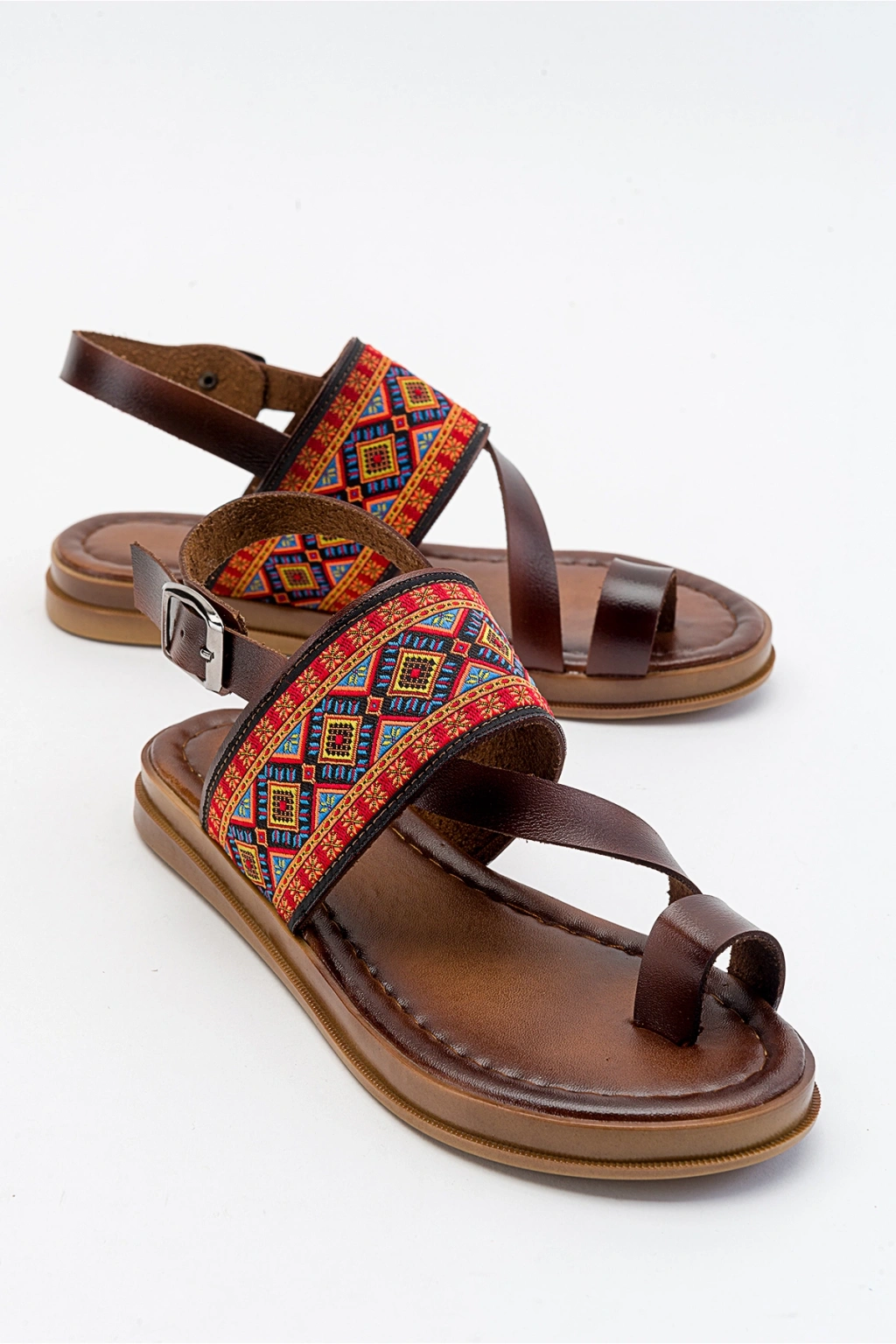 Lira Hakiki Deri Çift Tokalı Ayarlanabilir Çapraz Rahat Sandalet