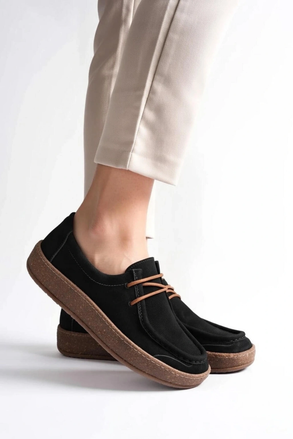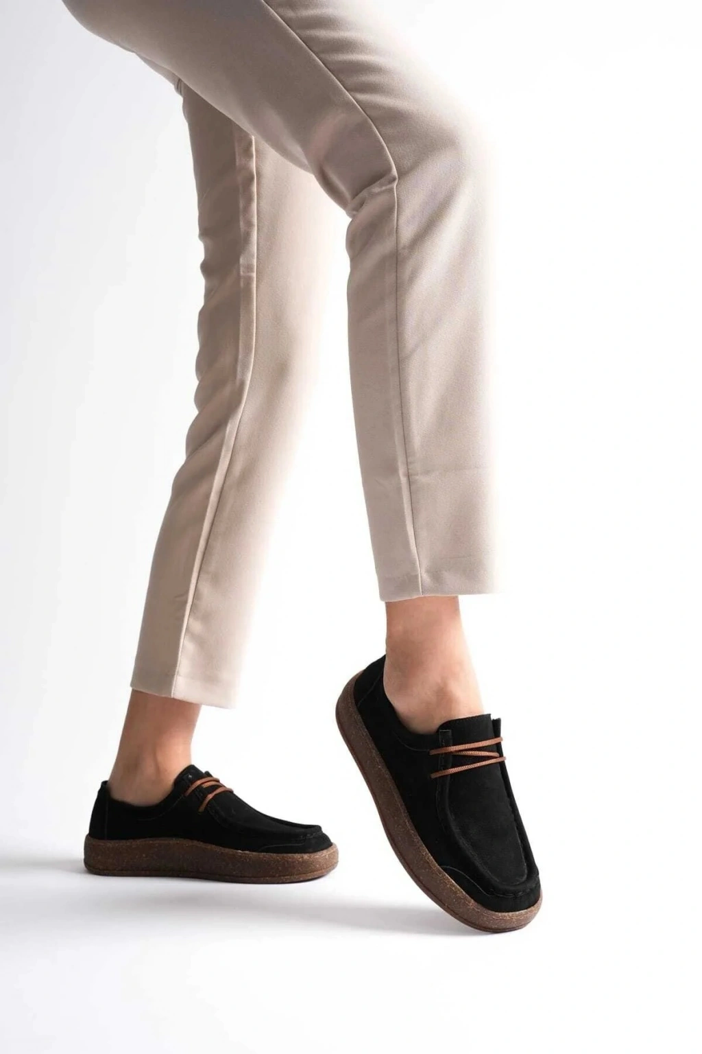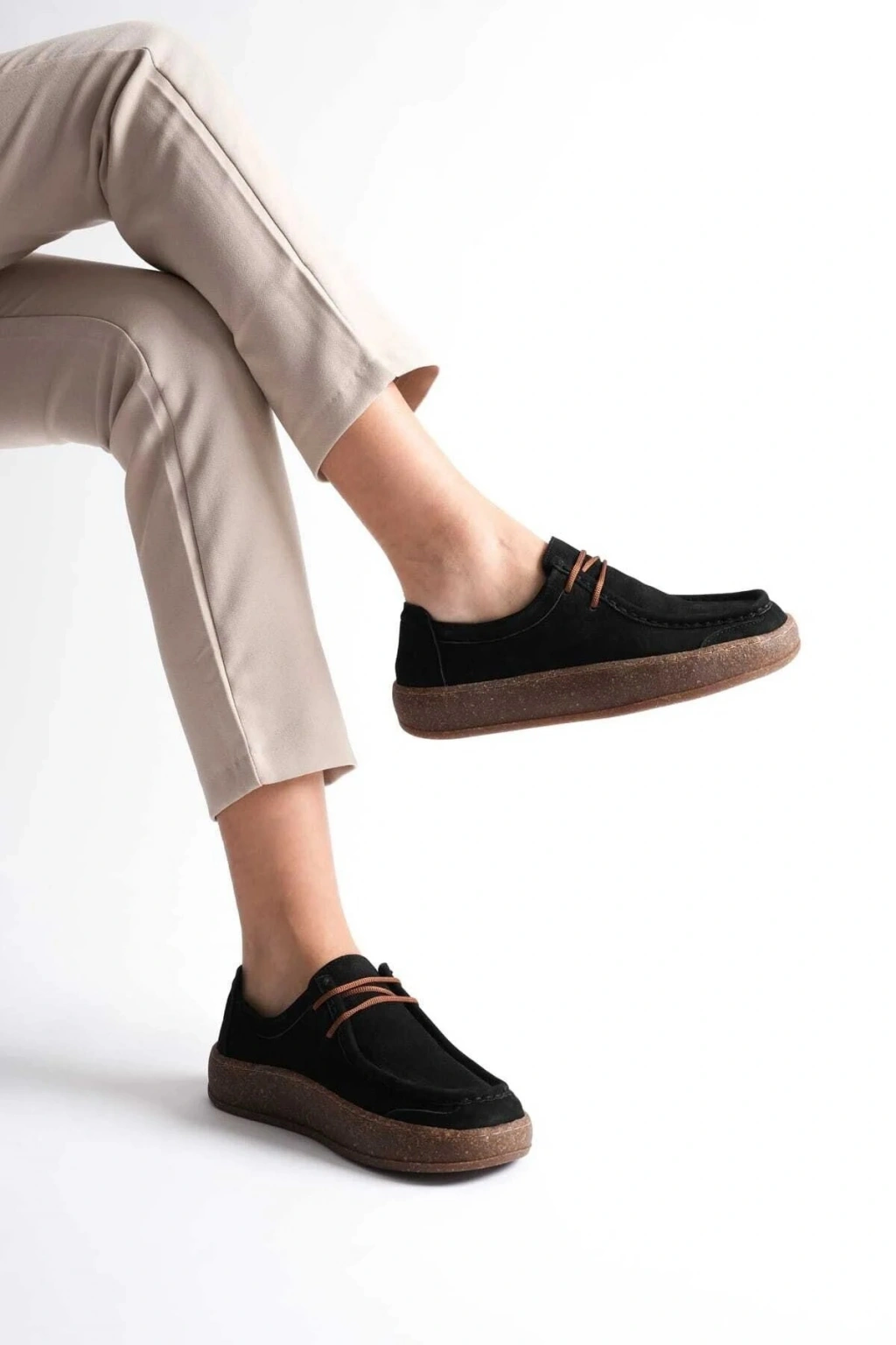 - Tam kalıptır.; Yüksek kaliteli nubuk materyali ile üretilmiş, uzun ömürlü kullanım sunar.; -Tamamıyle elde yapım.; - Bağcıklı tasarımı sayesinde ayaklara mükemmel uyum sağlar ve kişisel konforu artırır.; - Hakiki deri dış materyali ile şıklığı ve dayanıklılığı bir arada sunar.; - Lisanslı koleksiyonun bir parçası olarak, trendleri yakından takip eden bir stil ifade eder.; - Poli taban materyali ile hafiflik ve esneklik sağlar, gün boyu rahat hareket etme imkanı tanır.; - Nubuk saya materyali, ayakkabının nefes alabilirliğini artırarak ayak sağlığını destekler.; - İç astarında kullanılan hakiki deri, yumuşaklık ve konfor hissi verir.; - Düz deseniyle sade ve zamansız bir görünüm sergiler; her tür kıyafetle kolayca kombinlenebilir.; - Suni deri iç taban materyali, dayanıklılık ve uzun süreli kullanım vaat eder.; - Sürdürülebilirlik detayına sahip olmasıyla çevre dostu bir tercih olarak öne çıkar.; - Esnek yapısı sayesinde farklı ayak tiplerine uyum sağlayarak maksimum konfor sunar.; - Türkiye'de üretilmiş olmasıyla yerel üretim