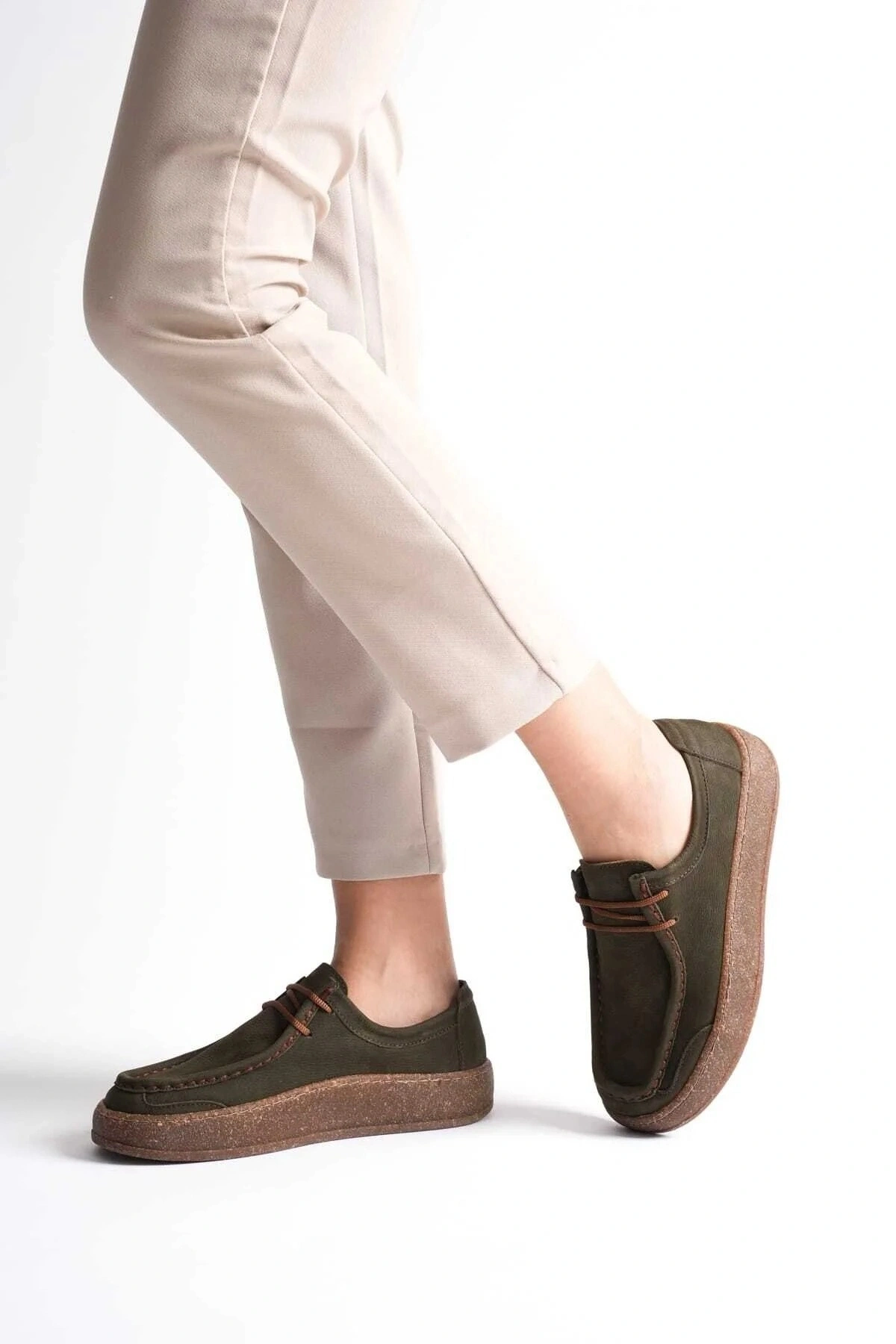Vita Hakiki Deri Nubuk Comfort Taban Bağcıklı Günlük Kadın Ayakkabı Elde Yapım